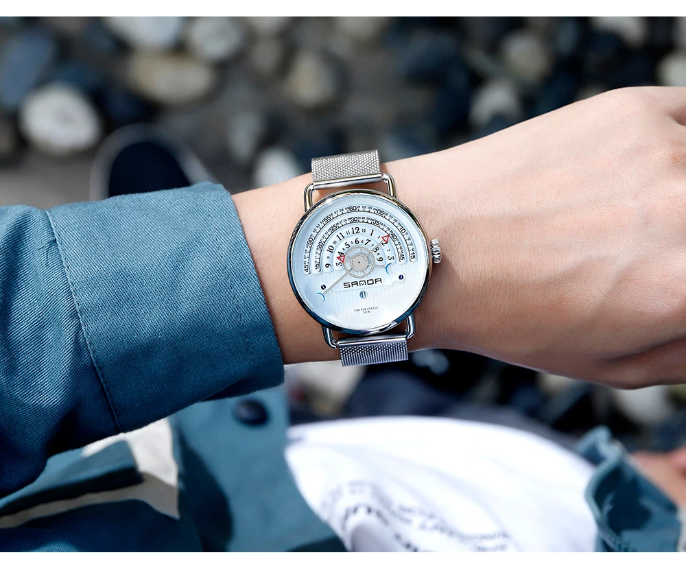 100% новый и высококачественный Количество: 1 шт. Механизм: кварцевый Циферблат часов: Материал зеркала: минеральное армированное стекло Форма циферблата: круглый Дисплей: Аналоговый Диаметр циферблата часов: 42 мм Толщина корпуса часов: 13 мм Ремешок для часов: Материал ремешка: сетчатый ремень Milan Тип застежки: складная пряжка Длина ремешка часов: 24,7 см Ширина ремешка часов: 20 мм Посылка входит: 1 х часы (без розничной упаковки)