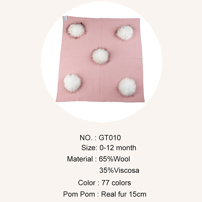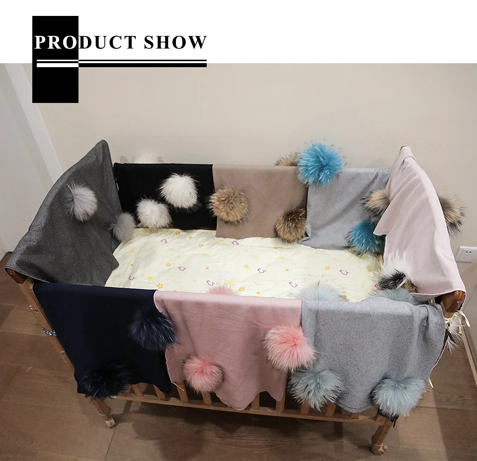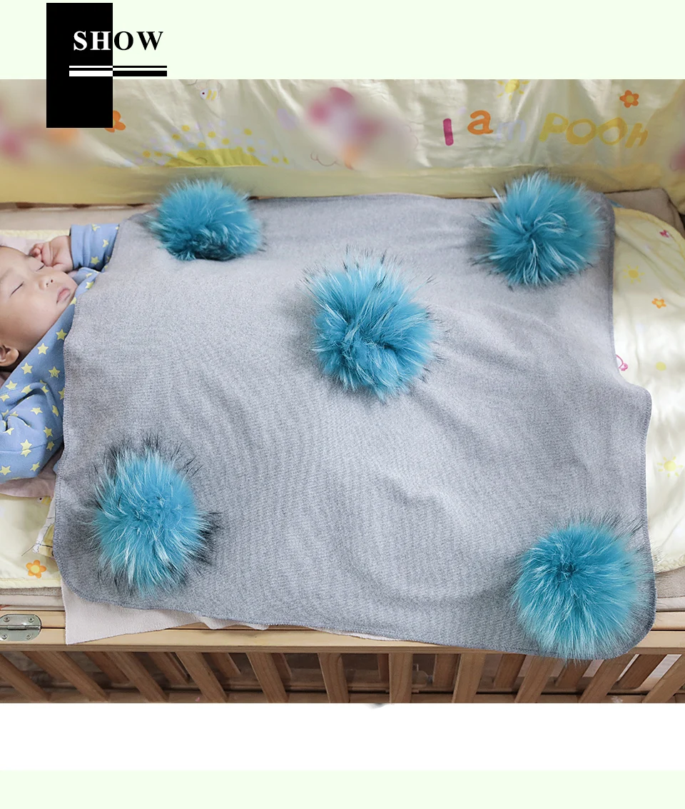 Теплое шерстяное Пеленальное Одеяло для новорожденных, детское одеяло для путешествий и сна, постельные пеленки с помпоном из натурального меха 15 см