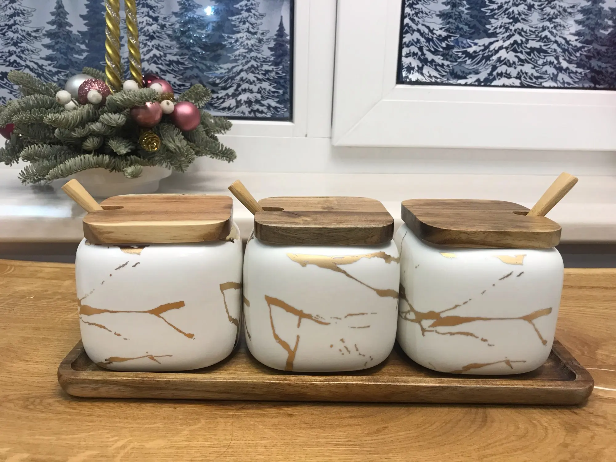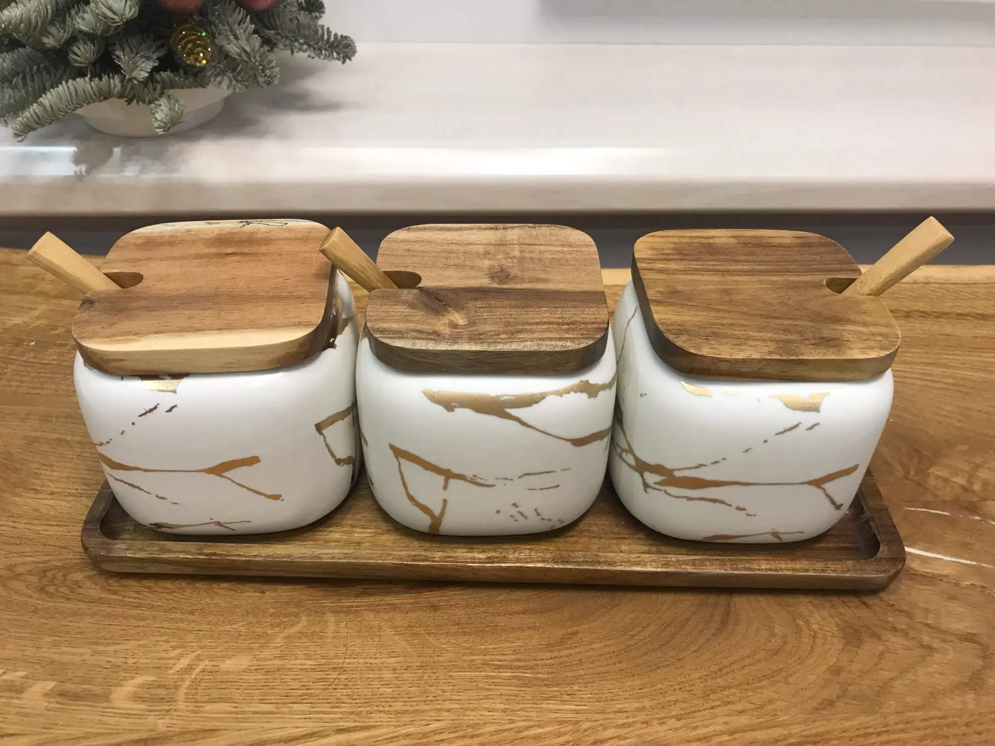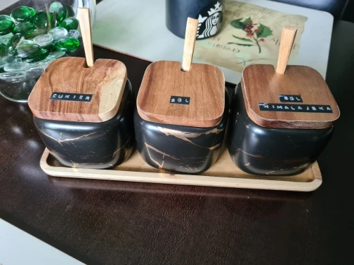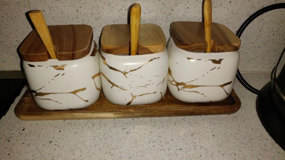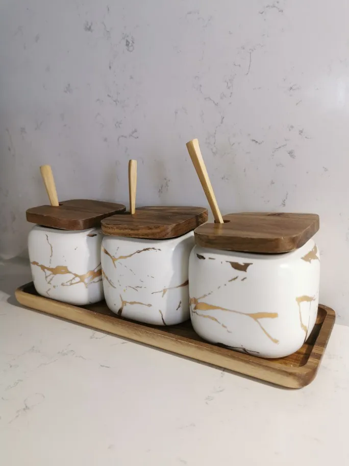 Набор керамических емкостей для приправ в скандинавском стиле с мраморным узором, деревянная крышка, солонка для специй, аксессуары для кухни