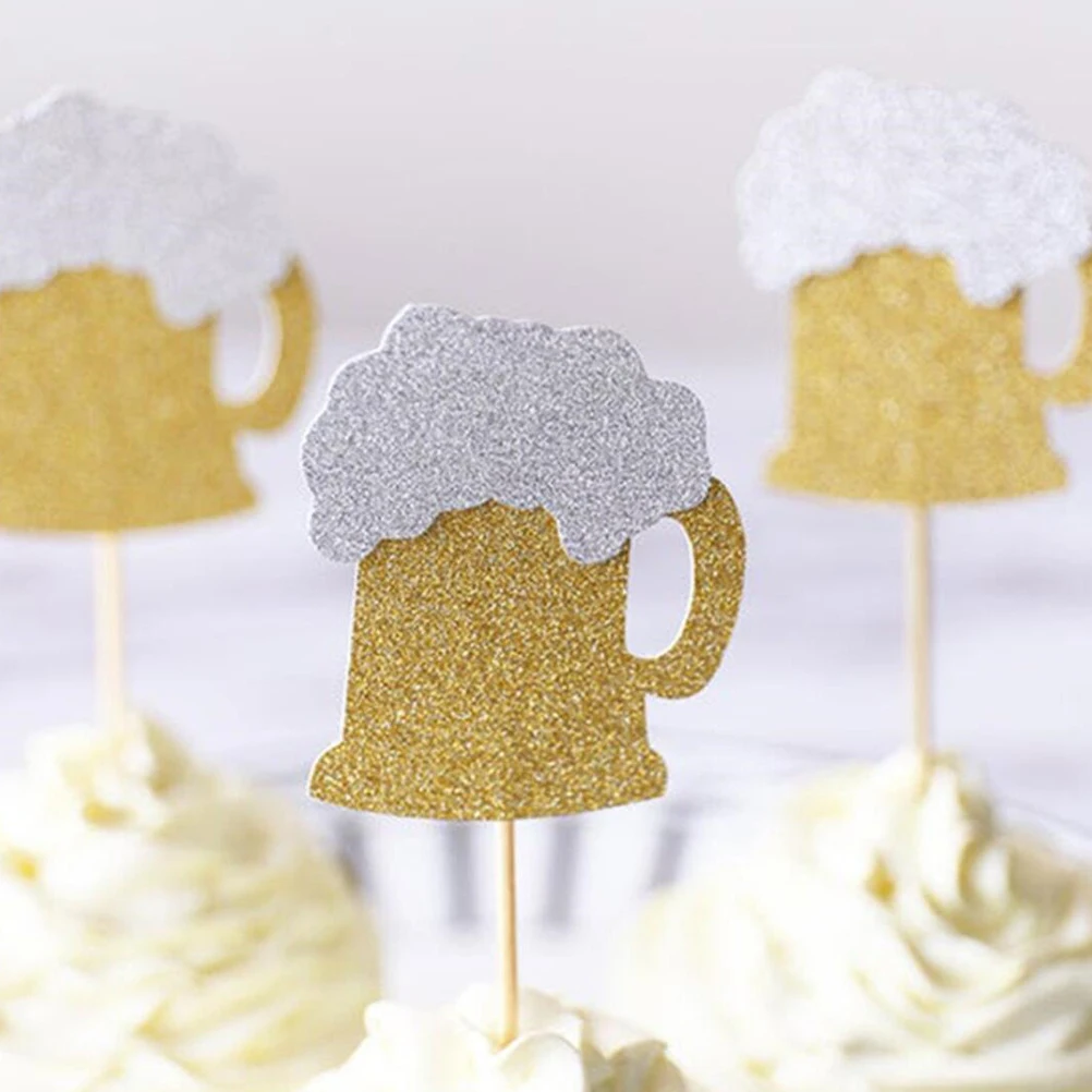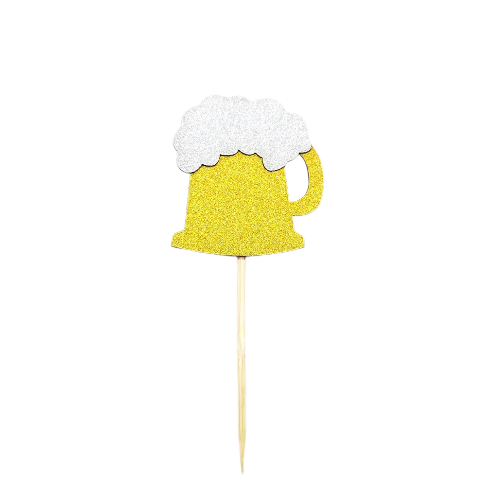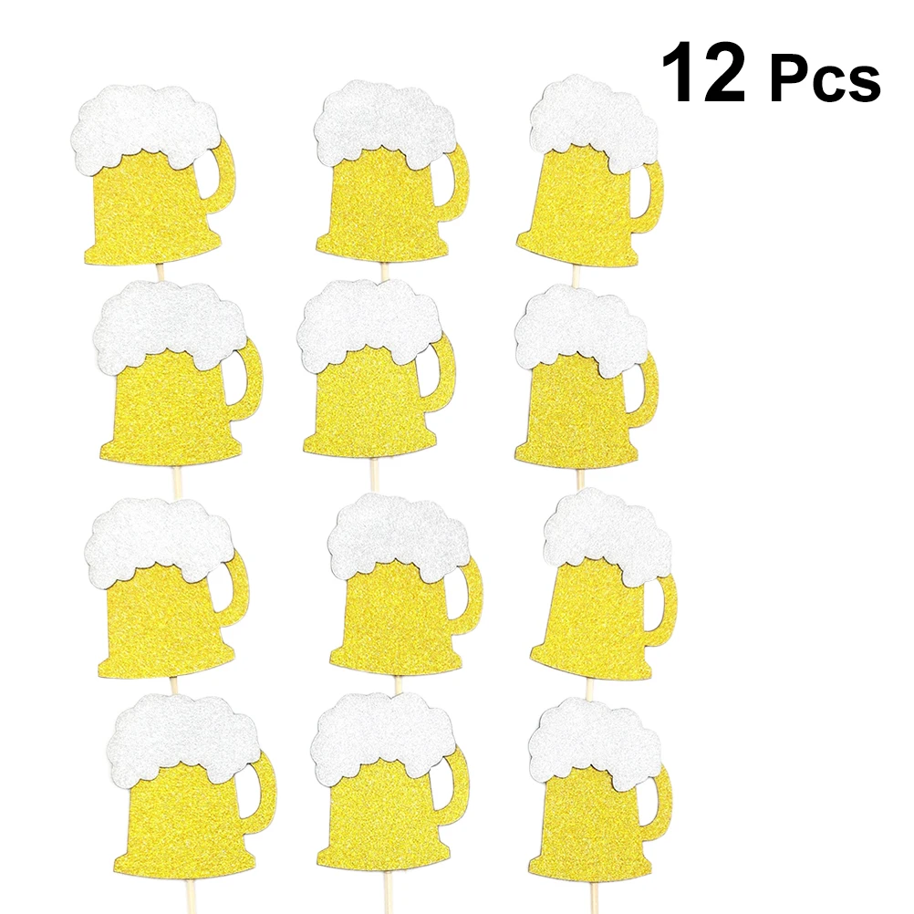12 шт. в упаковке, сверкающая Золотая форма пивной кружки торт Топпер блеск торт выбирает фруктовый десерт для капкейка-вечерние принадлежности для свадебного торжества и дня рождения
