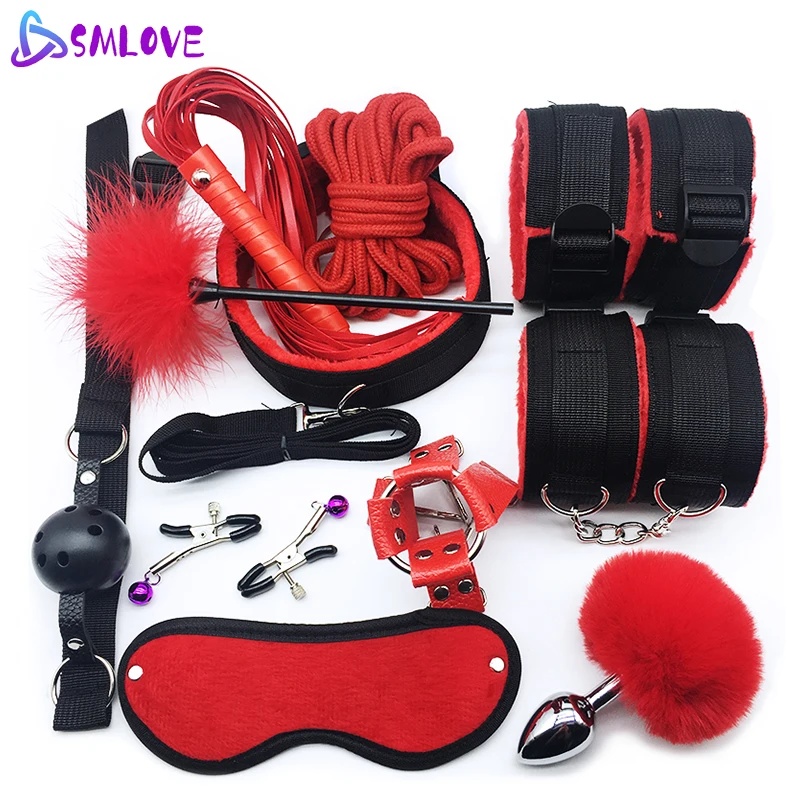SMLOVE Секс наручники воротник кнут кляп соски зажимы БДСМ Связывание веревка эротические взрослые секс игрушки для женщин пары Анальный Анальная пробка хвост