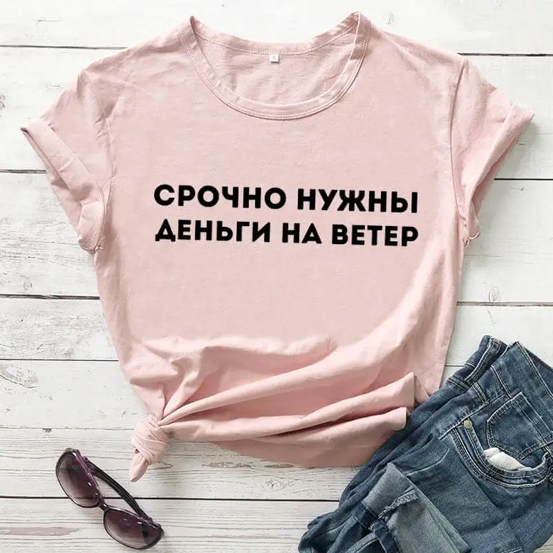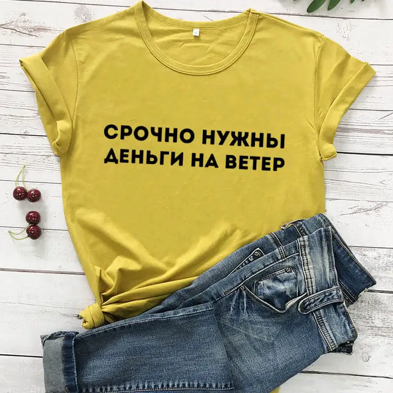 Срочно нужны деньги на ветер русскими буквами Новое поступление женские забавные повседневные рубашки из 100% хлопка женский милый пуловер футболка