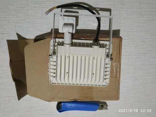 Прожектор пришёл в почти в целом состоянии,на фото наверно не видно,в нижнем Лёвом углу небольшой скол,крепление которое устанавливается на стену мятое и коробка почему то вскрыта и порвана,хорошо что сам прожектор дошёл,видимо хотели спереть посылку но не понравился товар. Вот так в наше время работает Служба доставки DPD,я был об этой компании был другого мнения,сколько раз заказывал,всегда доставляли в целости,может конечно не их вина,но получать посылку в таком состоянии не очень приятно!