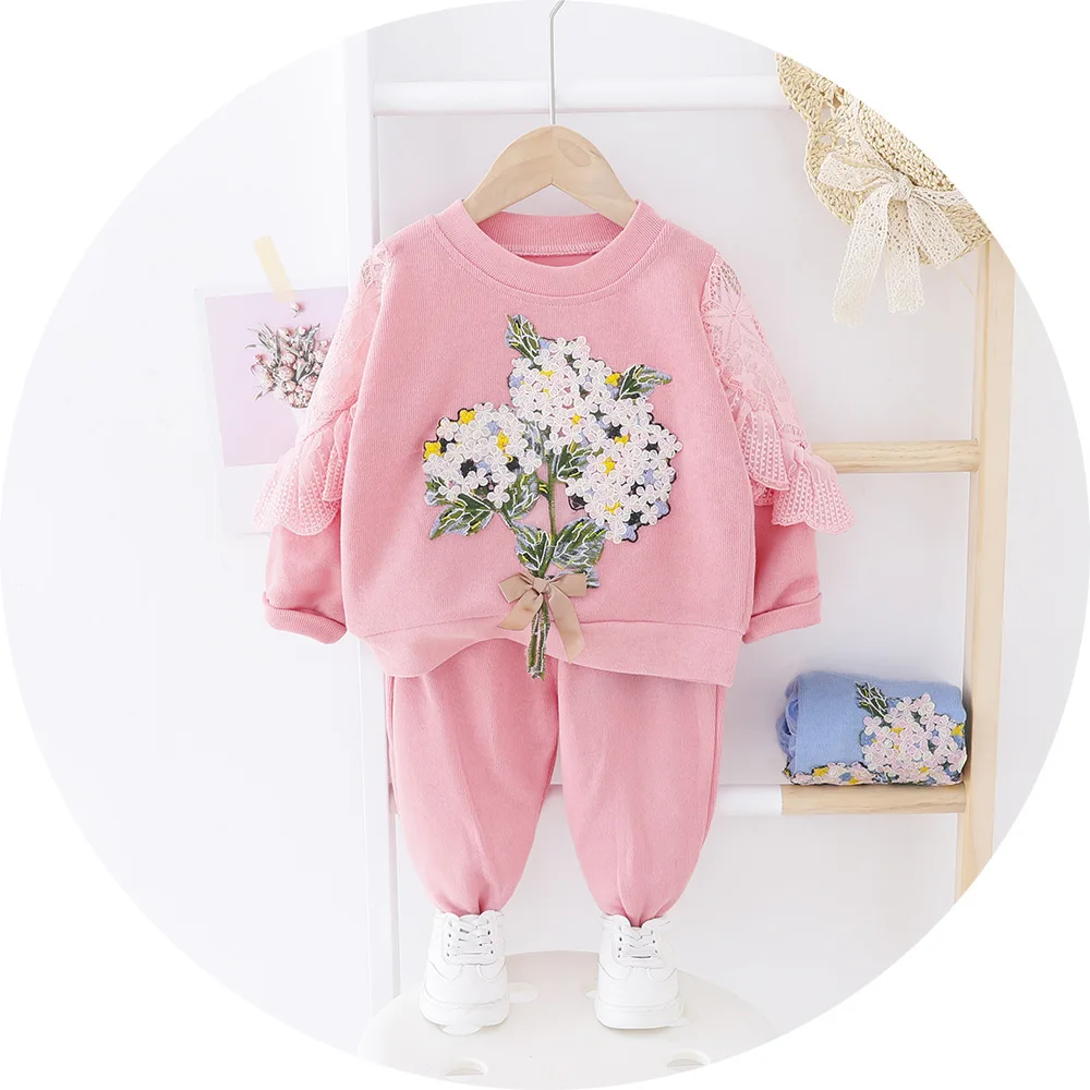 Новинка 2020 года, весенний комплект одежды для детей, Модный комплект из 2 предметов для маленьких девочек, куртка + штаны, комплект с рисунком, комплект одежды из хлопка для малышей