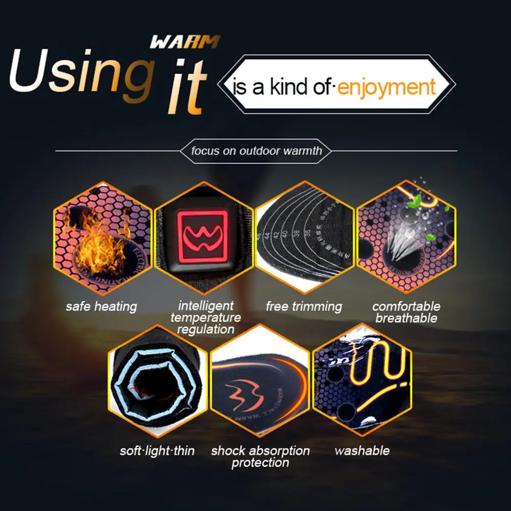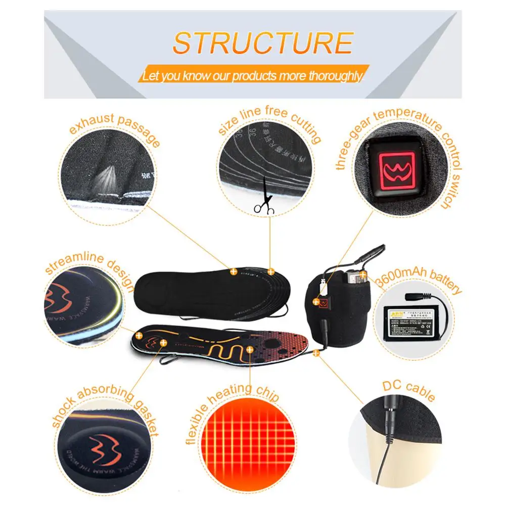 1 пара носков в стиле унисекс с Подогреваемые стельки Батарея приведенный в действие 3600 мАч, Перезаряжаемые с подогревом обувные стельки мотоциклетные зимние Лыжный Спорт обогреватели для ног