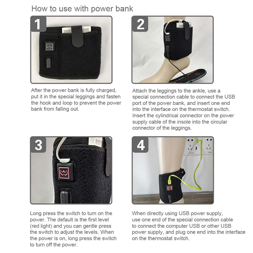 1. Зимняя теплая стопа: стелька с подогревом имеет хороший эффект тепла, чтобы сохранить тепло зимой.2. Моющиеся и многоразовые: стельки с подогревом можно стирать вручную.3. Длительное использование: температура сохраняет тепло в течение 6 -12 часов и длится долгое время, поэтому стелька с подогревом сохраняет ваши ноги в тепле.4. Качественный материал: стельки для обуви изготовлены из высококачественного углеродного волокна для дезинфекции и дезодорирования. Они дышащие, дезодорирующие и свободные.5. Использование унисекс: размер 36-46. Стельки для электрической обуви могут быть обрезаны по длине, которая легко подстраивается под правильный размер и подходит для мужчин и женщинОсобенности:Четыре способа нагрева (дополнительный литиевый аккумулятор, внешний аккумулятор, зарядное устройство USB и батарейный блок)3-х уровневый контроль температуры (высокая температура, средняя температура и низкая температура) (3-х уровневый контроль температуры, на возраст от 6 до 12 часов)Амортизирующие прокладки на подошве обеспечивают амортизацию.Стелька с подогревом дышащая, легкая и моющаяся.Стельки 36-46 размеров можно разрезать.Поставляется с 3,7 V / 3600mAh перезаряжаемая литиевая батареяСтелька с подогревом может быть применена к различным типам обуви.Максимальная температура нагрева может достигать 65 градусов Цельсия.Характеристики:Название: термостат электрическая стелькаМатериал: полиэстер и нагревательный материалРазмер: 36-46 размер стельки можно отрезатьУпаковочный лист:1 пара стелек для электрического отопления2 * Чехлы для аккумуляторов с регулируемой температурой2 * Зарядка через USB Android кабели2 * батареи DC3600MAH2 * короткий кабель для Android-DC1 * USB 1-to-2 DC Мужской кабель