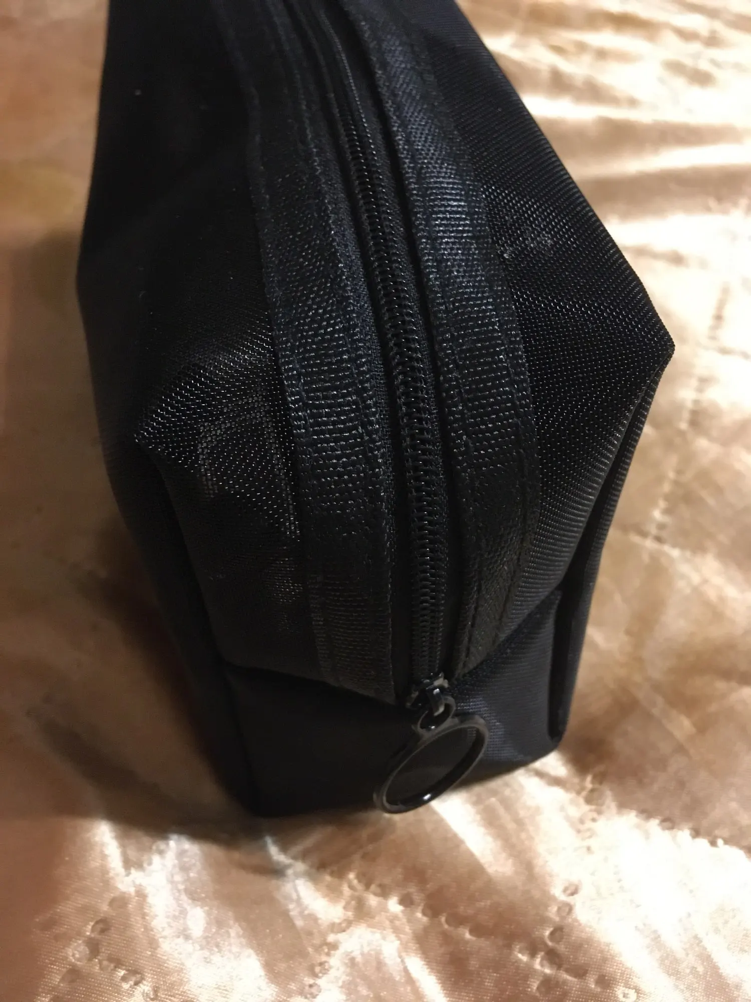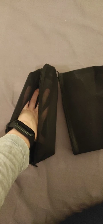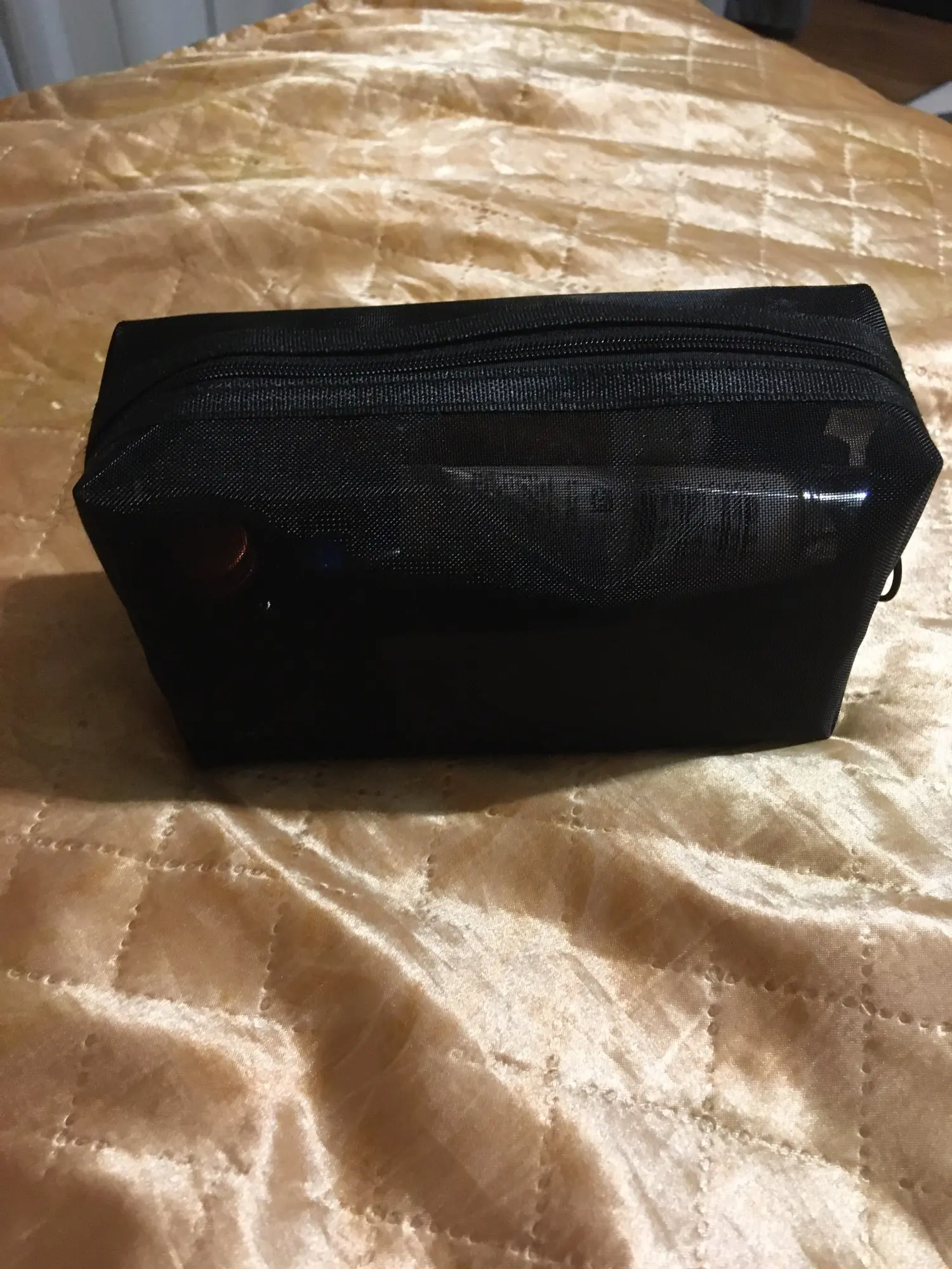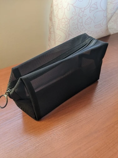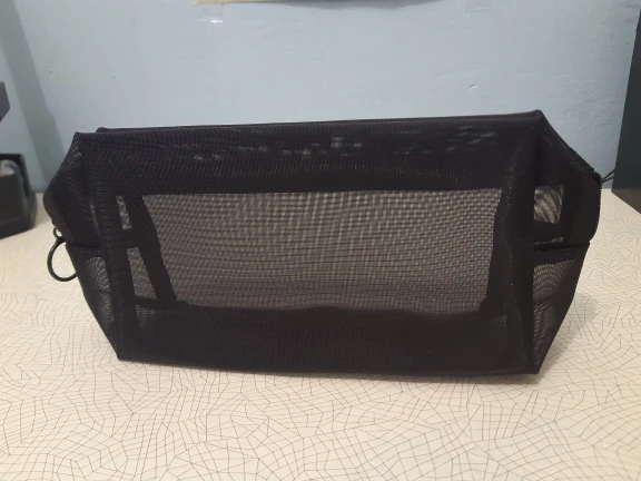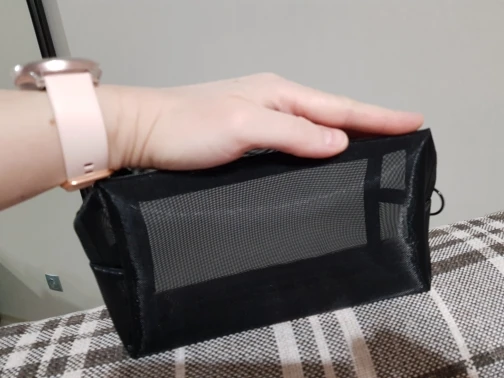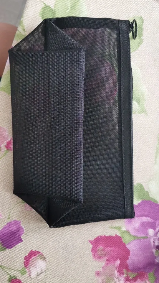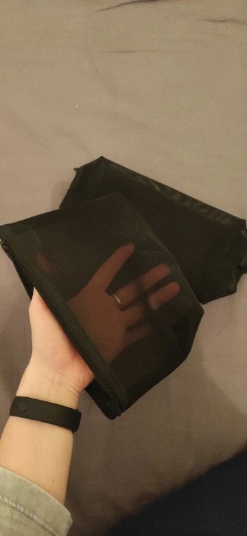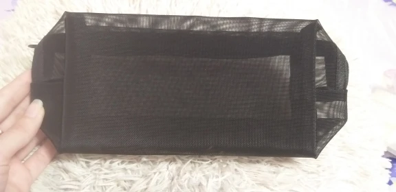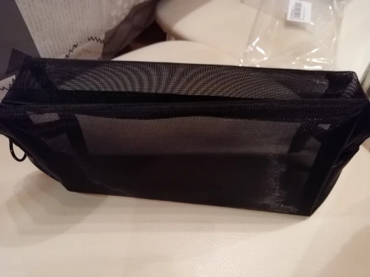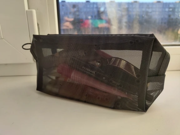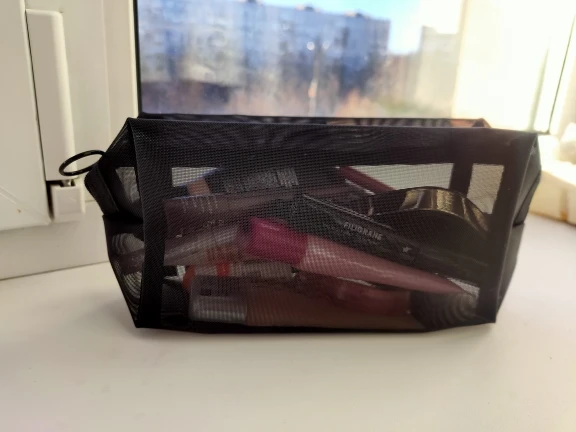 Пришла быстро, за 3 недели до Урала, в общей посылке с другими заказами. Полупрозрачная косметичка, ткань сетка жёсткая, прошито хорошо.