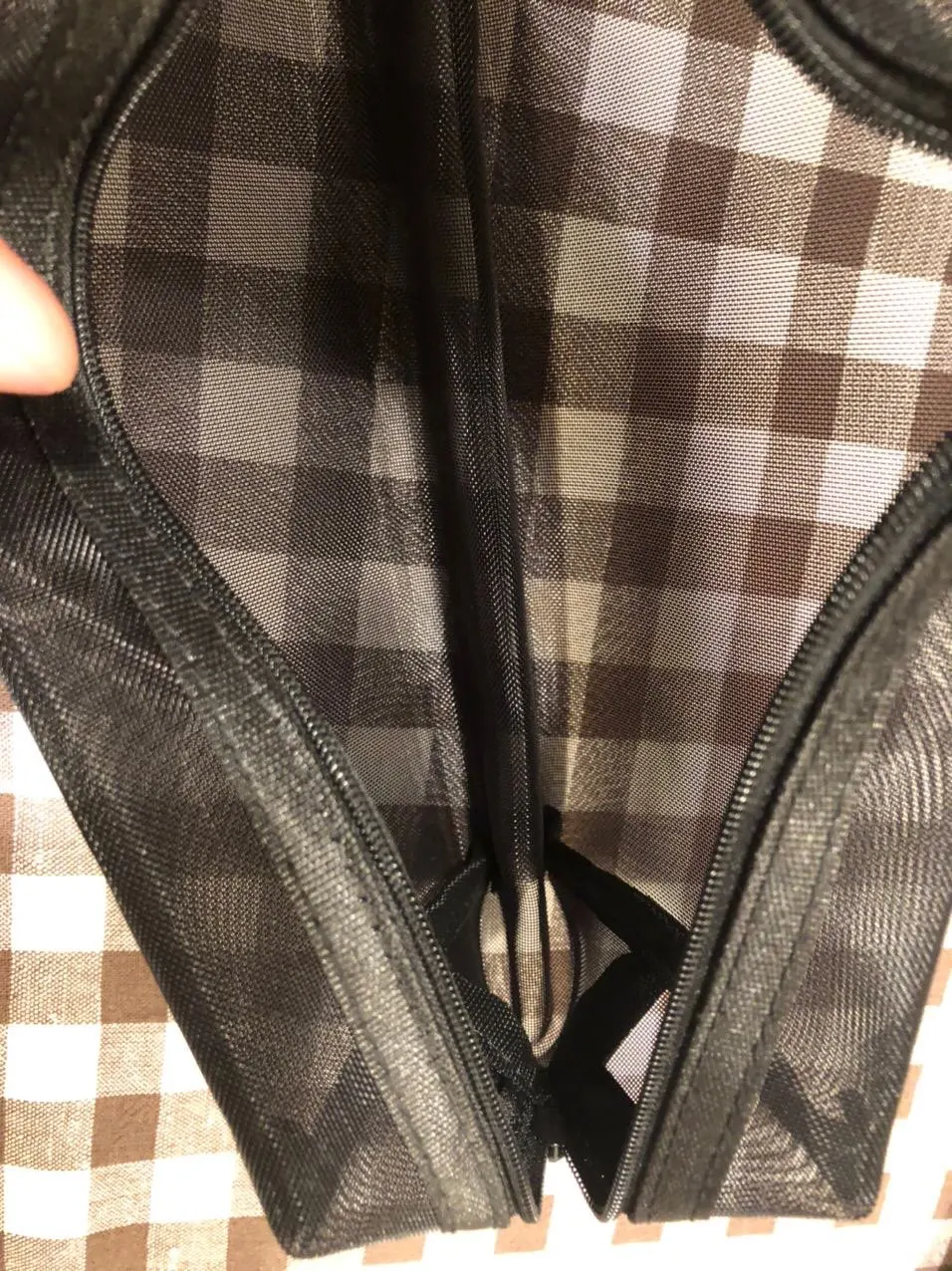 Товар отличного качества, молния ездит, как по маслу, вместительная. Швы все хорошо обработаны, края спрятаны, ткань полупрозрачная в полную сетку. Товар быстро пришёл. Продавца рекомендую.