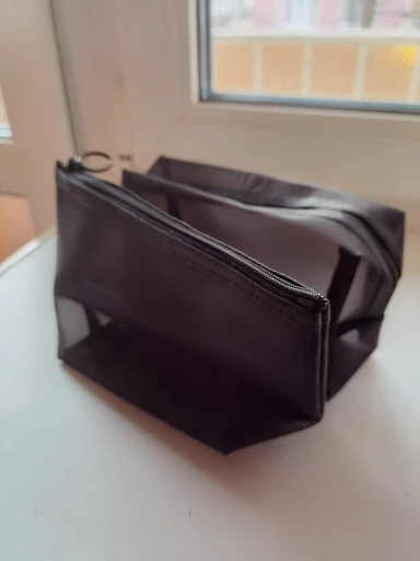 Очень вместительная косметичка. Хорошего качества, замок легкий и исправный. Форму принимает быстро. Товар пришёл за 3 недели