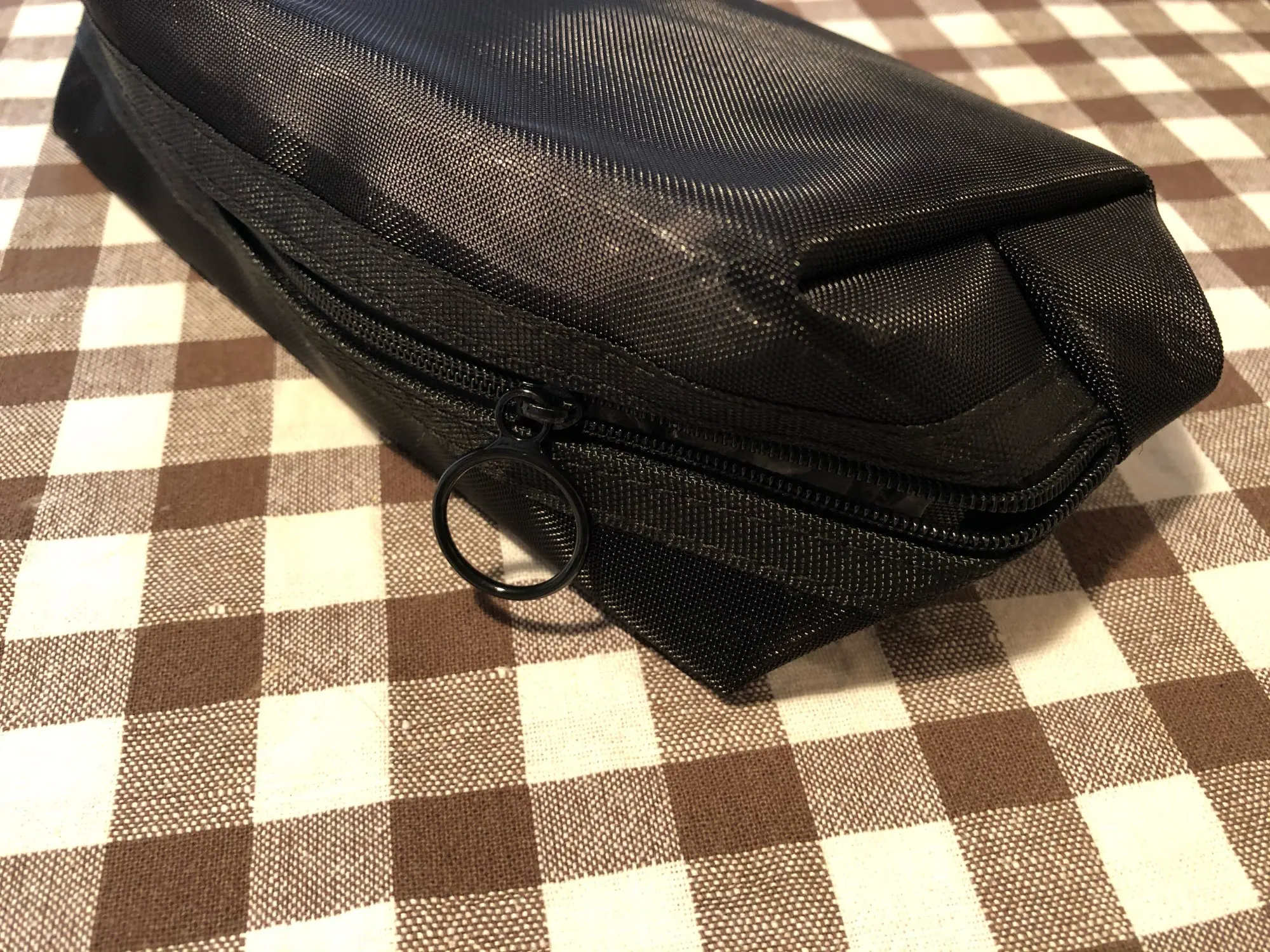 Посылка доехала быстро: всего за две недели (в Свердловскую область; заказала 11 ноября, получила 27 ноября). Пакет получила на почте. Косметичка из довольно плотного и качественного материала, запах слабый, пахнет новой материей как в магазине тканей. Молния рабочая, кольцо на собачке очень удобное. Косметичка вместительная: всё, что мне было нужно, как раз вошло. С продавцом не общалась. Заказ был упакован и отправлен на следующий день после оплаты. Время покажет, как долго прослужит косметичка, но пока я довольна покупкой.