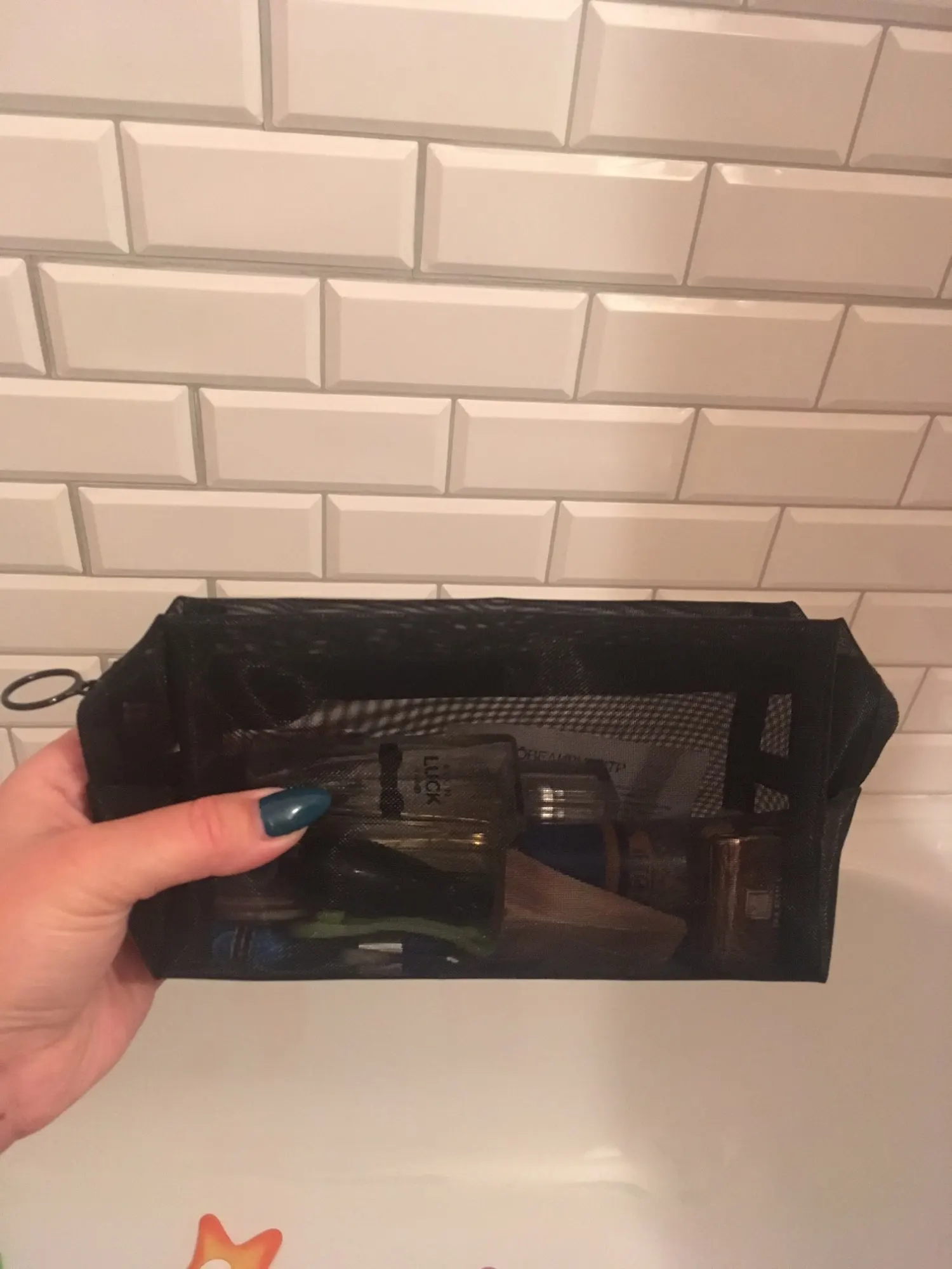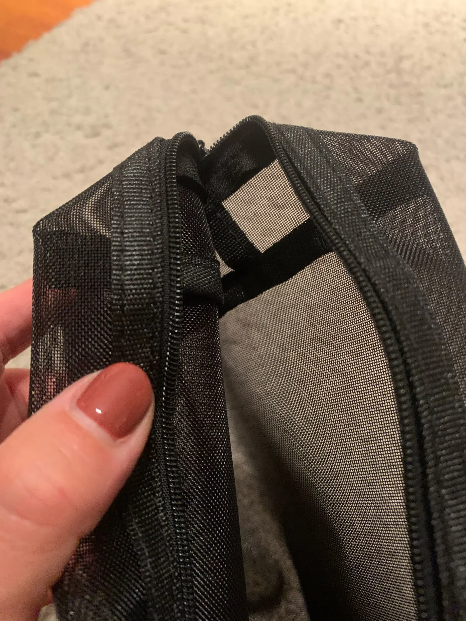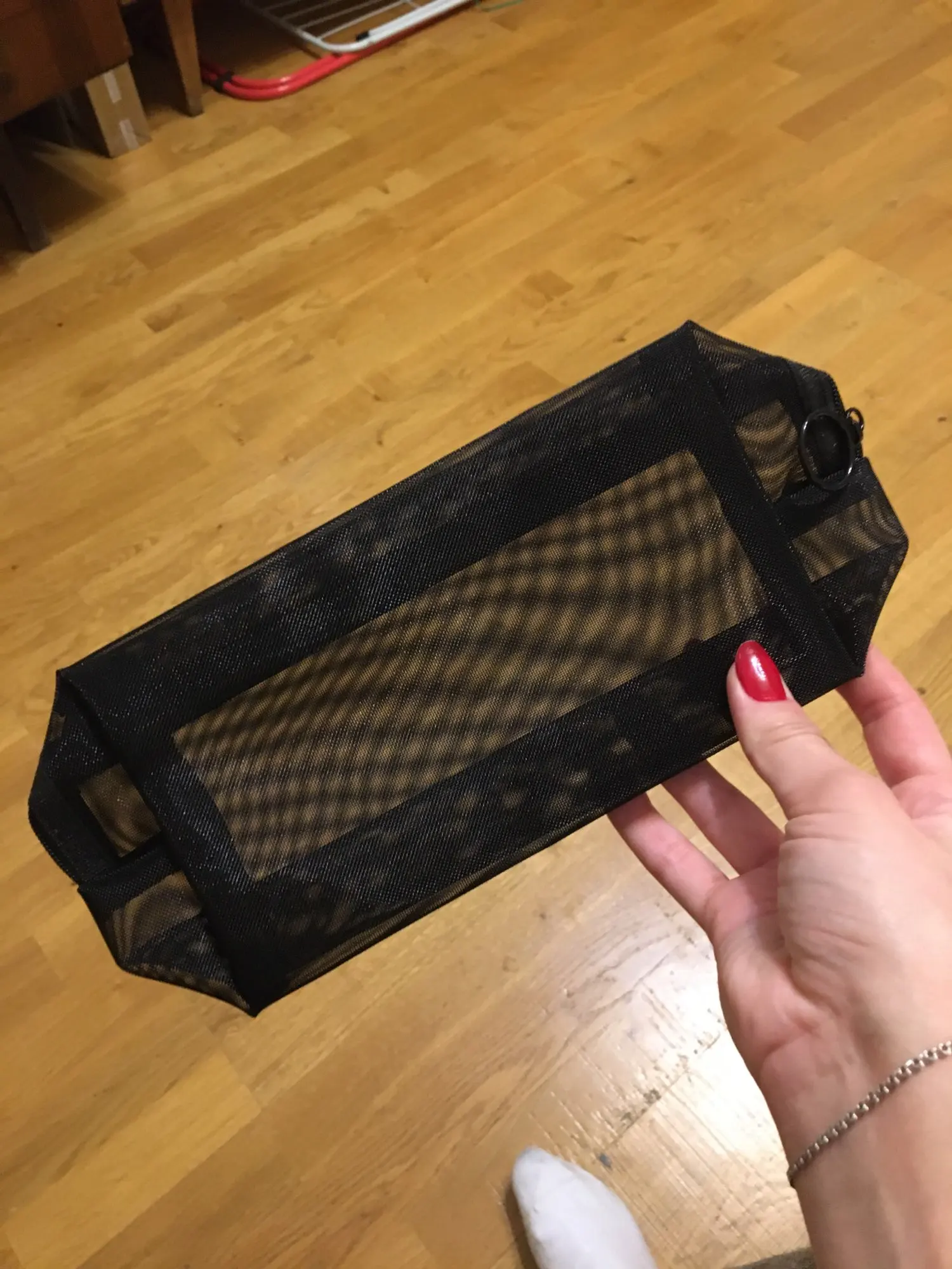 Косметичка отличная, сетка прочная, достаточно жесткая.