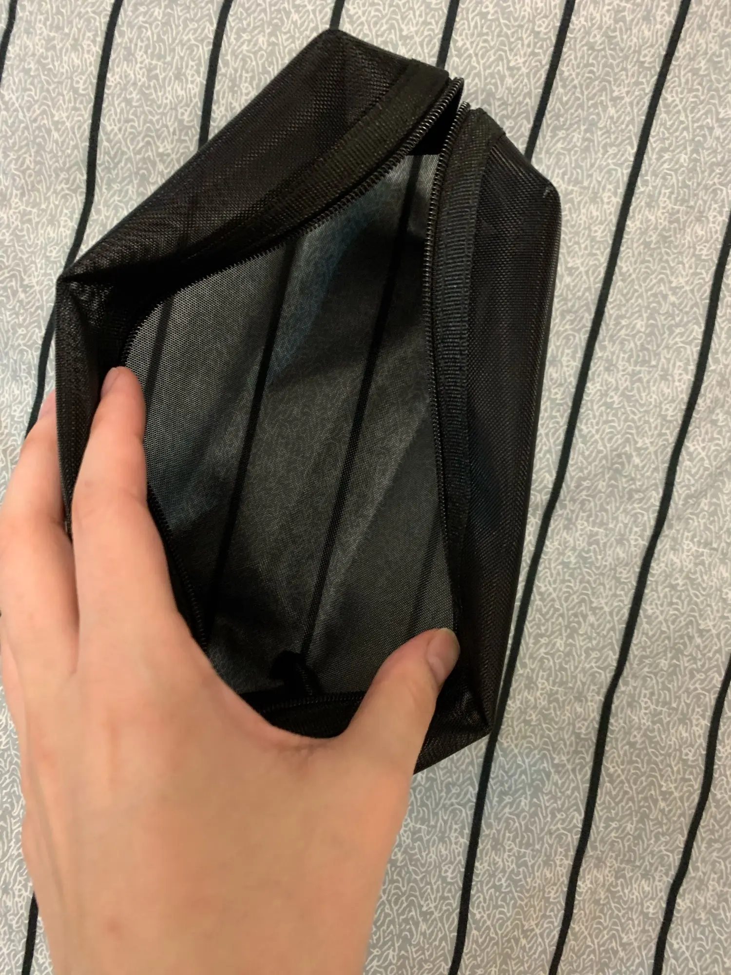 Косметичка отличная, качественный пошив, все сделано очень аккуратно. Пришло в сложенном виде, прополоскала ее в тёплой мыльной воде и она достаточно быстро приняла свою форму.
