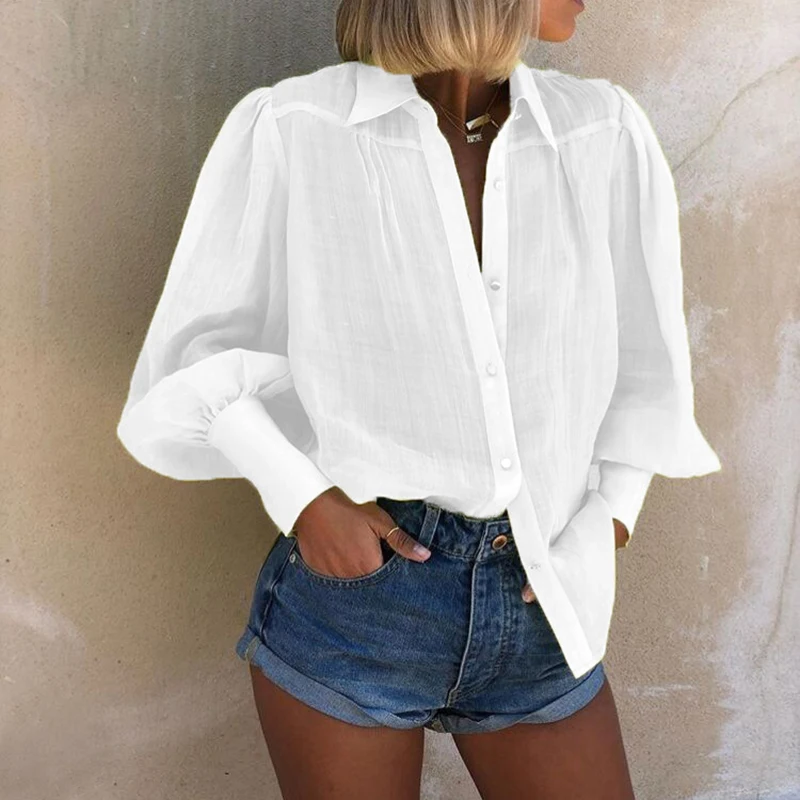 Блузка женская с отложным верхом, Повседневная Свободная рубашка с длинным рукавом, модель SJ5593V, белая уличная одежда на весну-лето, размера плюс
