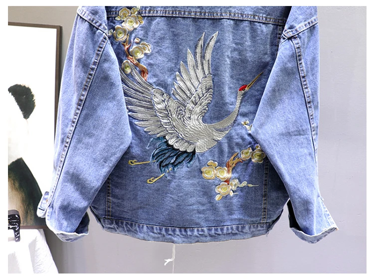 Женская джинсовая куртка с вышивкой в стиле бойфренд