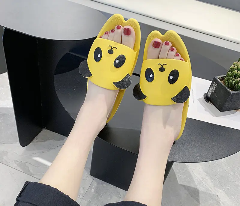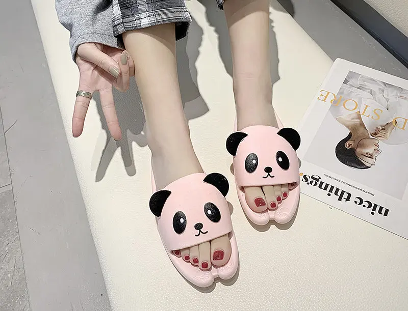 Шлепанцы; Женские тапочки; Домашние шлепанцы для ванной; Забавная обувь; Тапочки с медведем; Женские нескользящие Мягкие Шлепанцы без застежки; Женская обувь