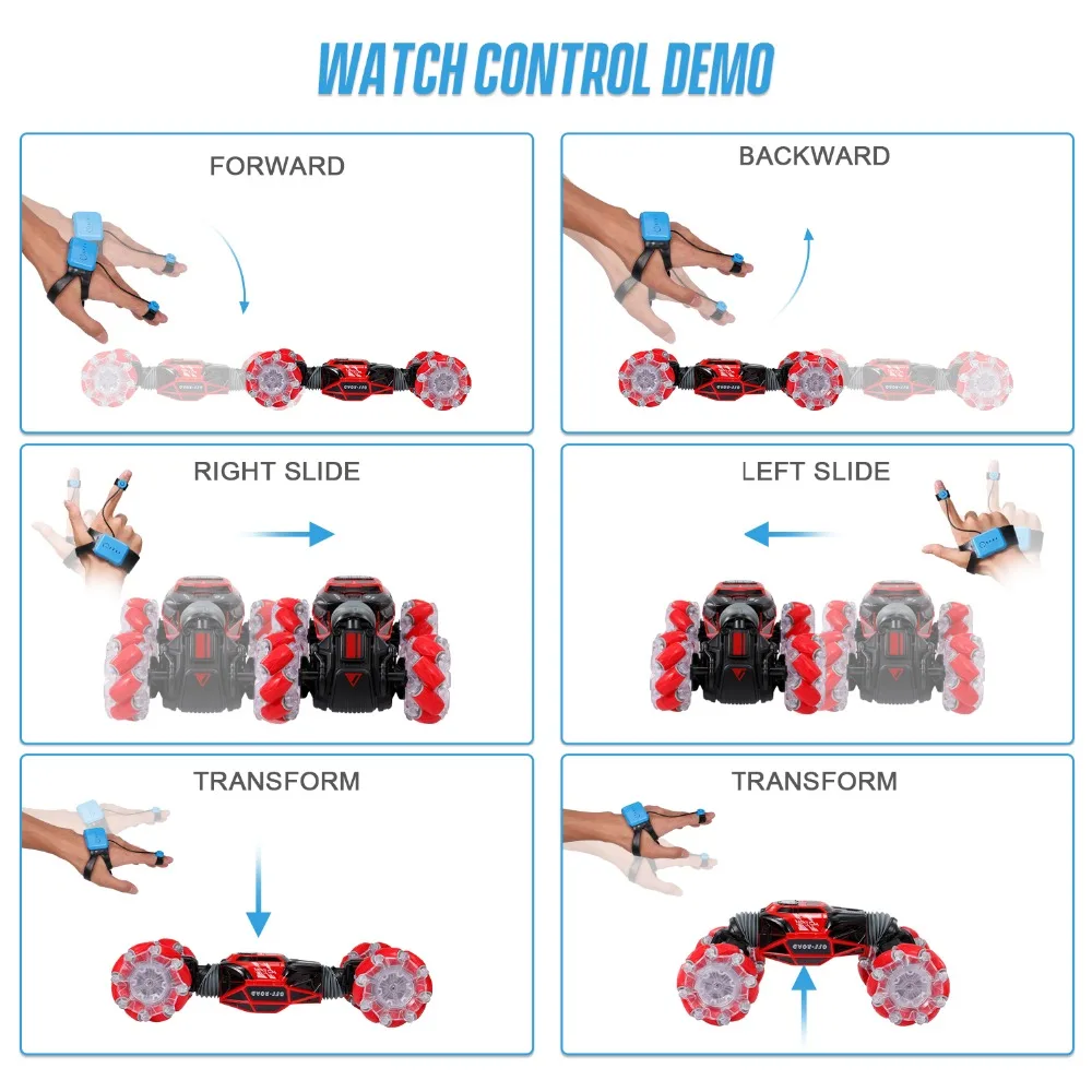 Новый 4WD RC трюк, автомобильные часы, датчик жеста, управление, деформируемый Электрический радиоуправляемый дрейф, автомобильный трансформатор, автомобильная игрушка для детей, светодиодный светильник