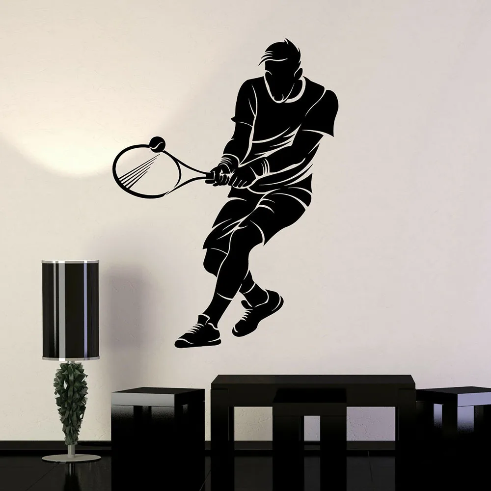Виниловые наклейки для интерьера, настенные наклейки на тему спорта ракетка, мяч, игровой стадион, для комнаты подростка, для декора дверей, окон, E246
