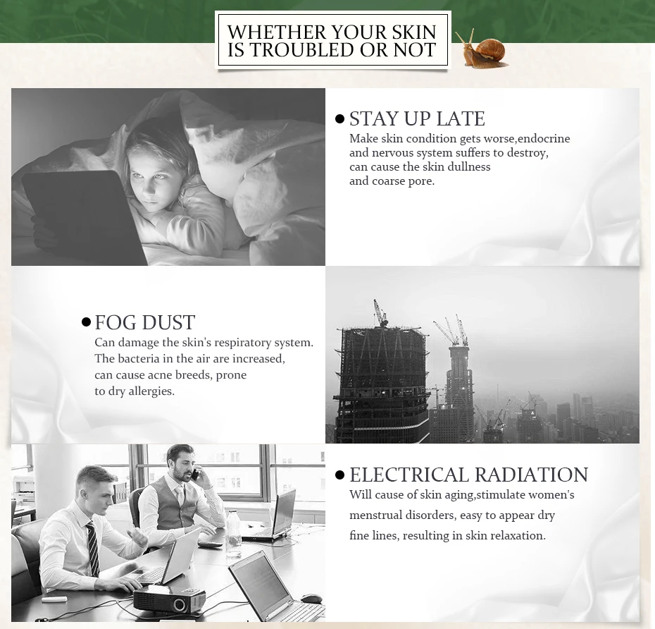 ● Задержитесь: состояние кожи ухудшится, эндокринная и нервная система мучается, может привести к тусклости кожи и грубой поры. ● Пыль от тумана: может повредить дыхательную систему кожи. Бактерии в воздухе увеличиваются, могут вызвать появление акне, пронето-сухую аллергию. ● Электрическое излучение: вызовет старение кожи, стимулирует женские менструальные расстройства, легко появляются сухие тонкие линии, что приводит к расслаблению кожи.