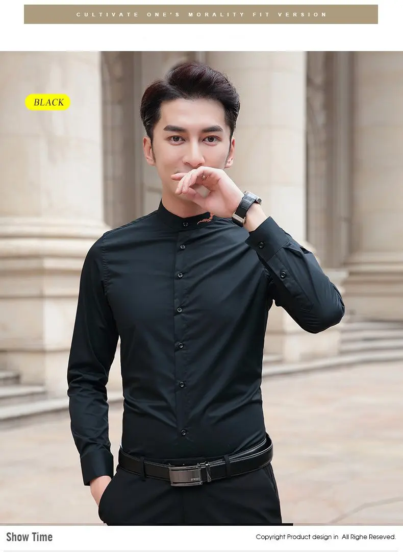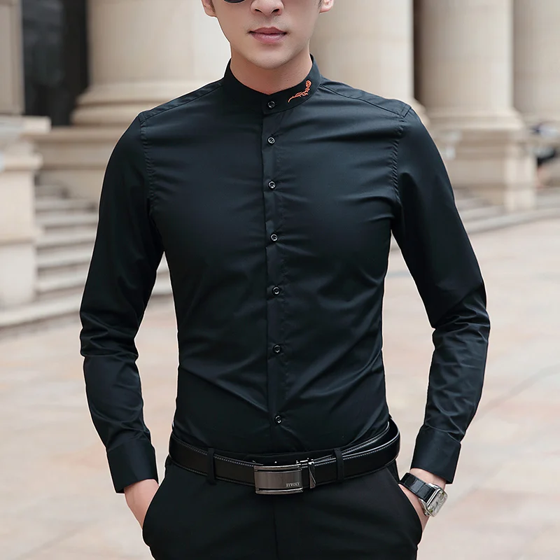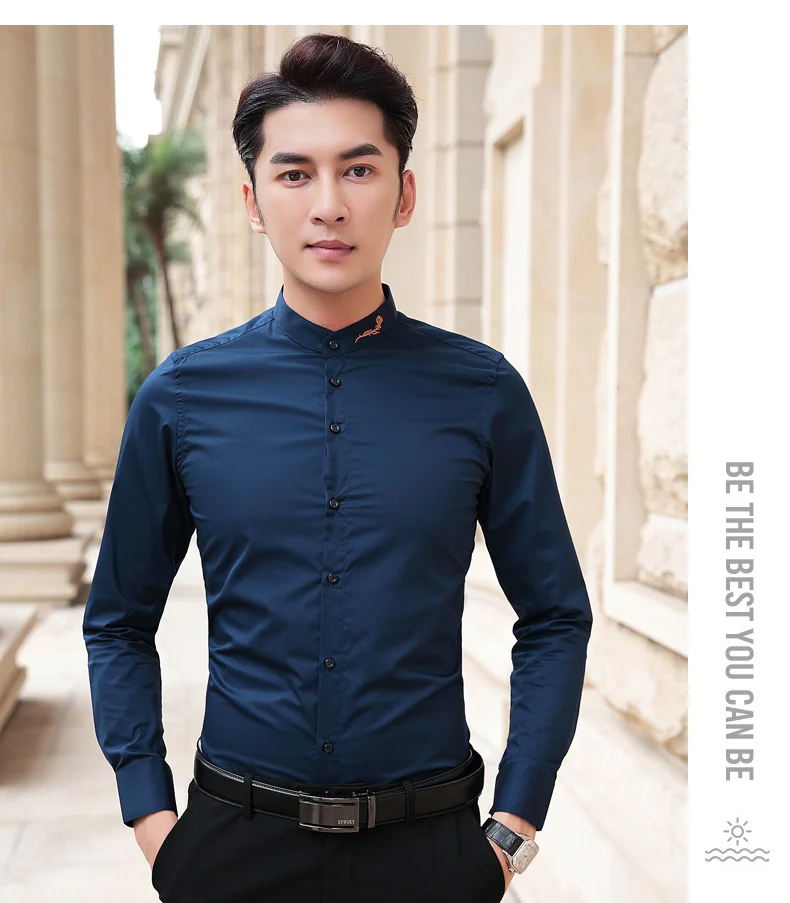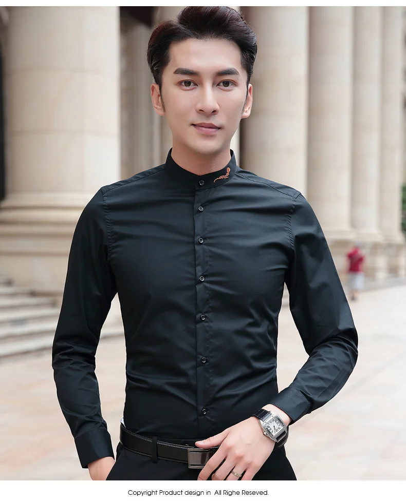 BROWON 2022, новые мужские рубашки, мужские однотонные рубашки с длинным рукавом и стоячим воротником, мужские повседневные рубашки большого размера, деловые