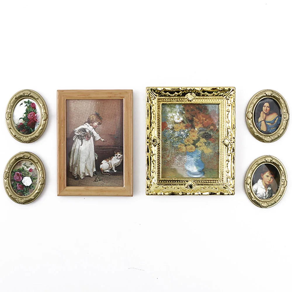 Миниатюрное зеркало для кукольного домика, в золотистой рамке, 1:12