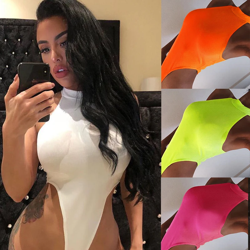 Сексуальные неоновые боди в стиле High Street, летние разноцветные Боди без рукавов, с открытой спиной, для фитнеса, для клуба, для вечеринки, комбинезон