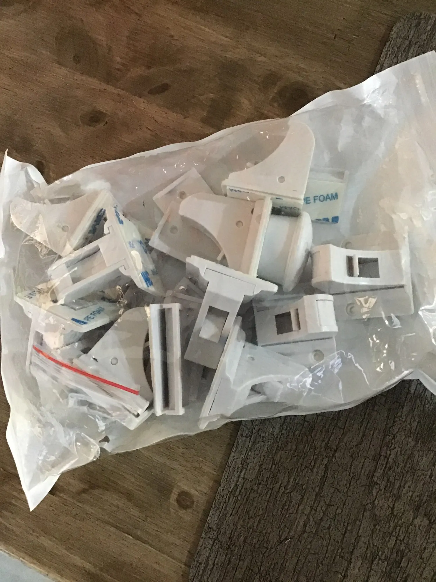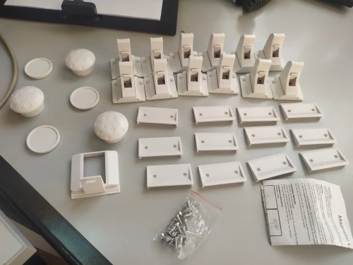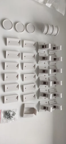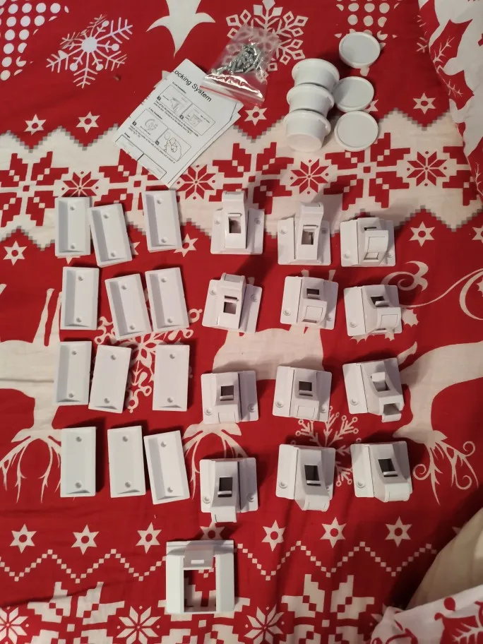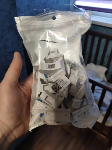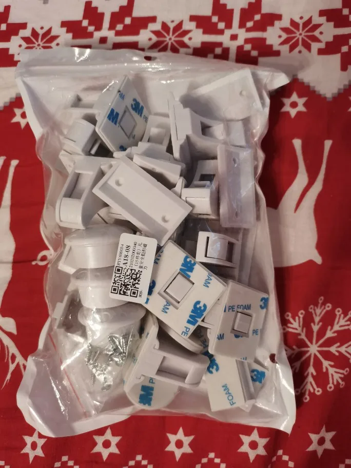 Отличные замки. Единственное что не хватили, это саморезов для крепления. Были только для половины замков. Клей держит замки для ребенка, но, по началу, взрослые сами их отрывали). Удобно, что замок временно можно заблокировать защелкой.