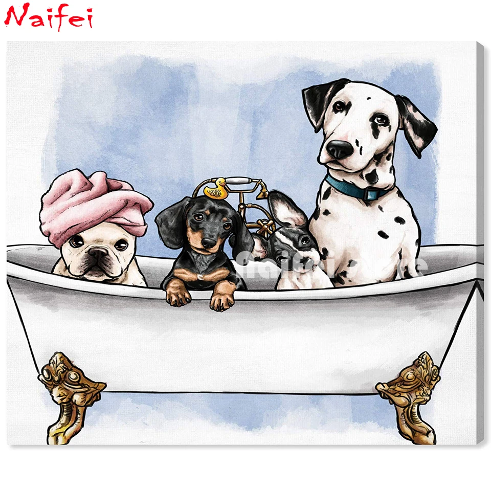 5D алмазная картина полностью квадратная Сделай Сам домашний декор мозаика Стразы картина далматинь такса бульдог настенные художественные фото Ванна собака