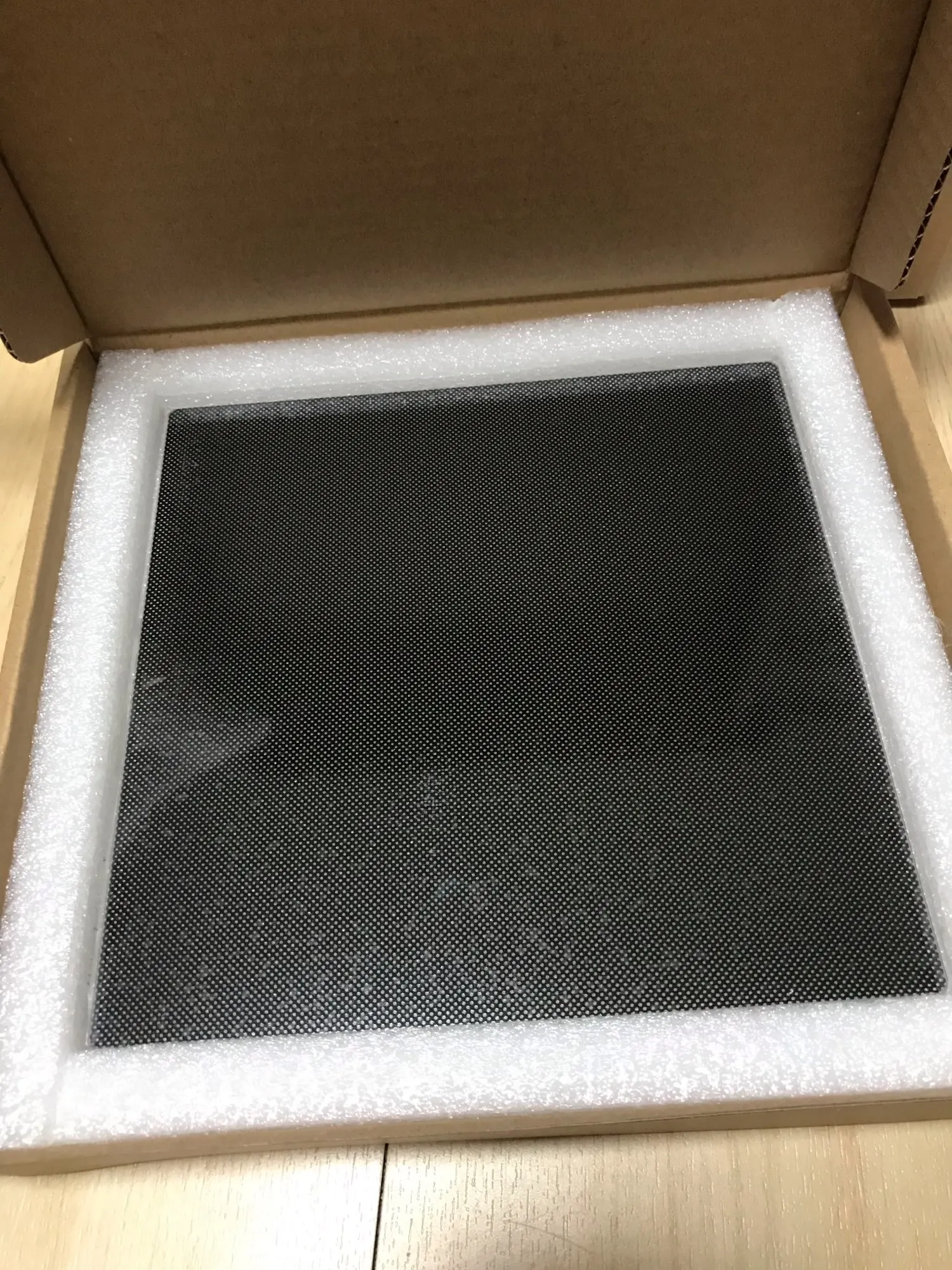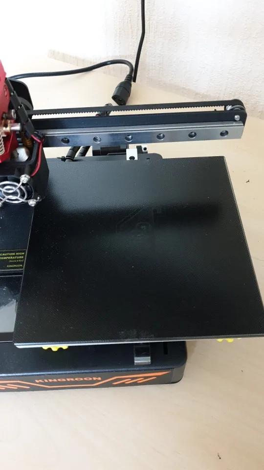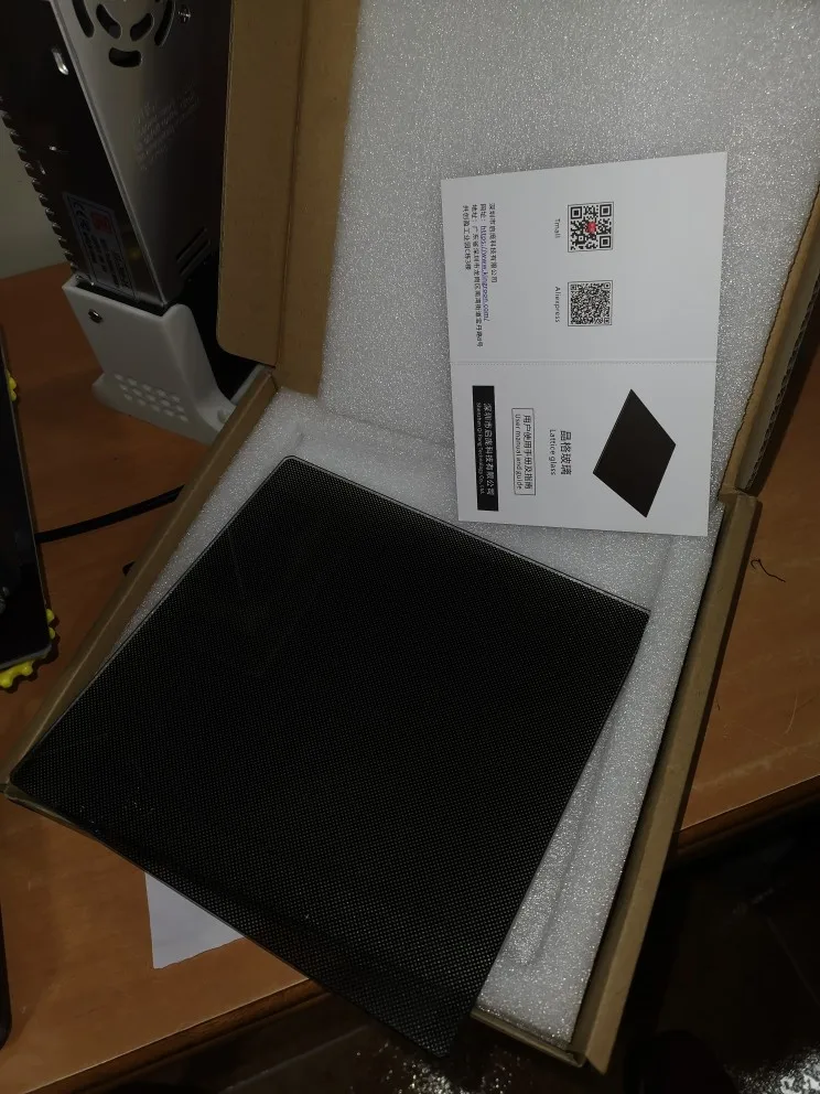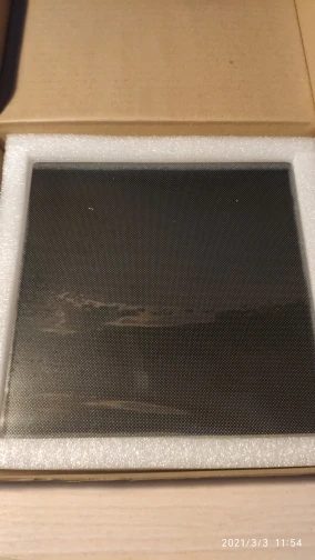 пришло стекло без надписи кингрун, но это только плюс. с одной стороны напыление, к которому пластик отлично липнет! столик прогревается теперь еще более равномерно, правда стекло остывает довольно долго... крепил на маленькие зажимы для бумаг. попробовал на скотч, но из-за кривоватой алюминиевой нагреваемой основы, стекло начинает немного отклеиваться в углу и зазор выставить нереально.. :((