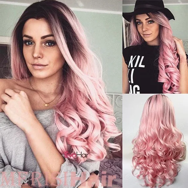 Зеленые, розовые длинные волнистые парики с эффектом омбре, розовые Свободные Вьющиеся парики, полный парик, косплей, Хэллоуин, аксессуары для костюма