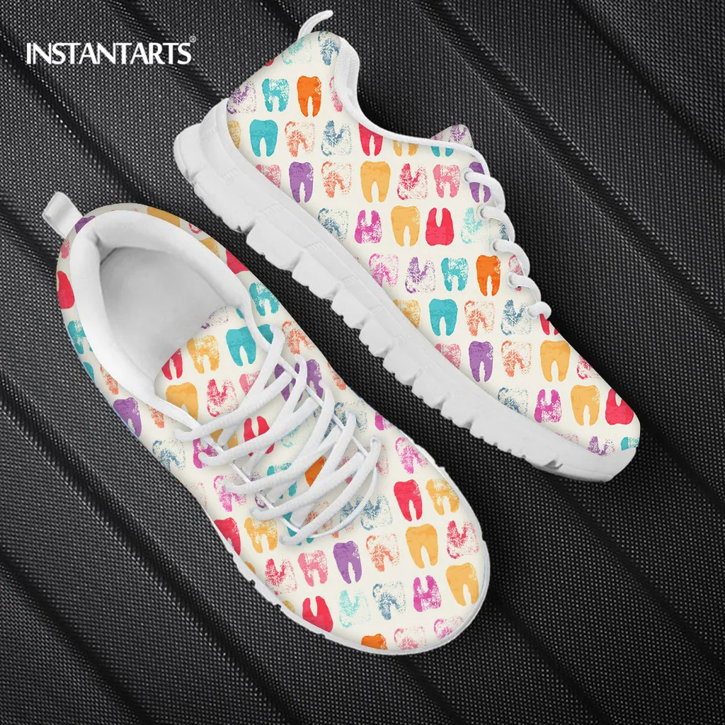 Женские кроссовки INSTANTARTS с забавным принтом зубов, сетчатые ды...