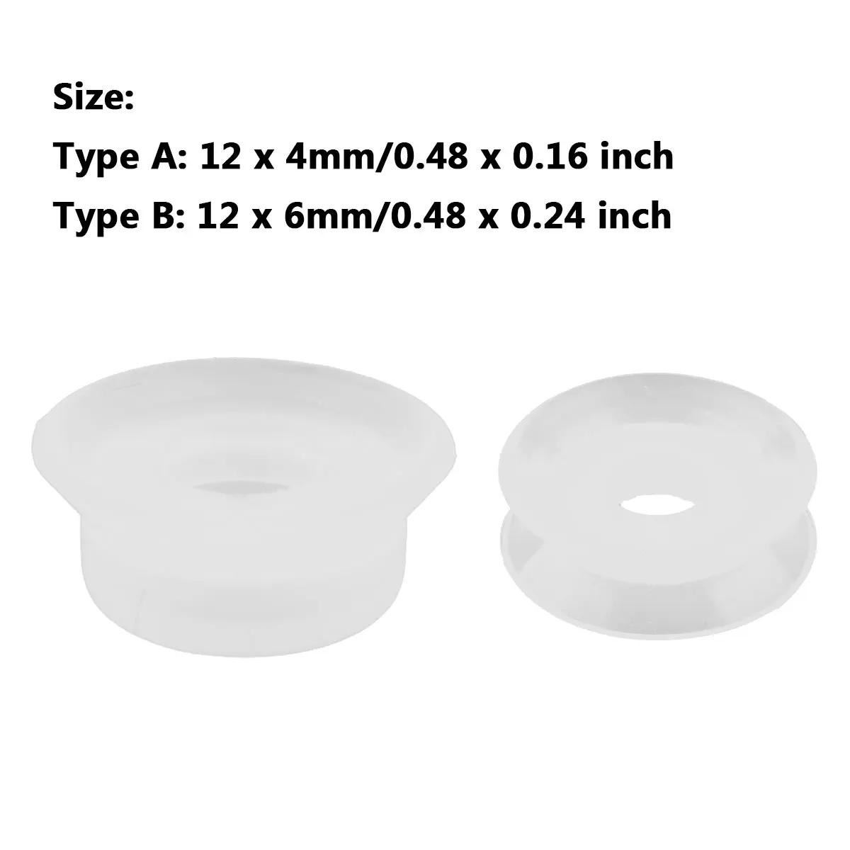 Размеры: Тип A (внешний DxH): 12x4 мм/0,48x0,16 дюймов; Отверстие Диаметр: 3 мм/0,1 дюймов Тип B (внешнее защитное DxH): 13x6 мм/0,5x0,24 дюймов; Низ Диаметр: 9 мм/0,35 дюйма; Отверстие Диаметр: 5 мм/0,2 дюйма