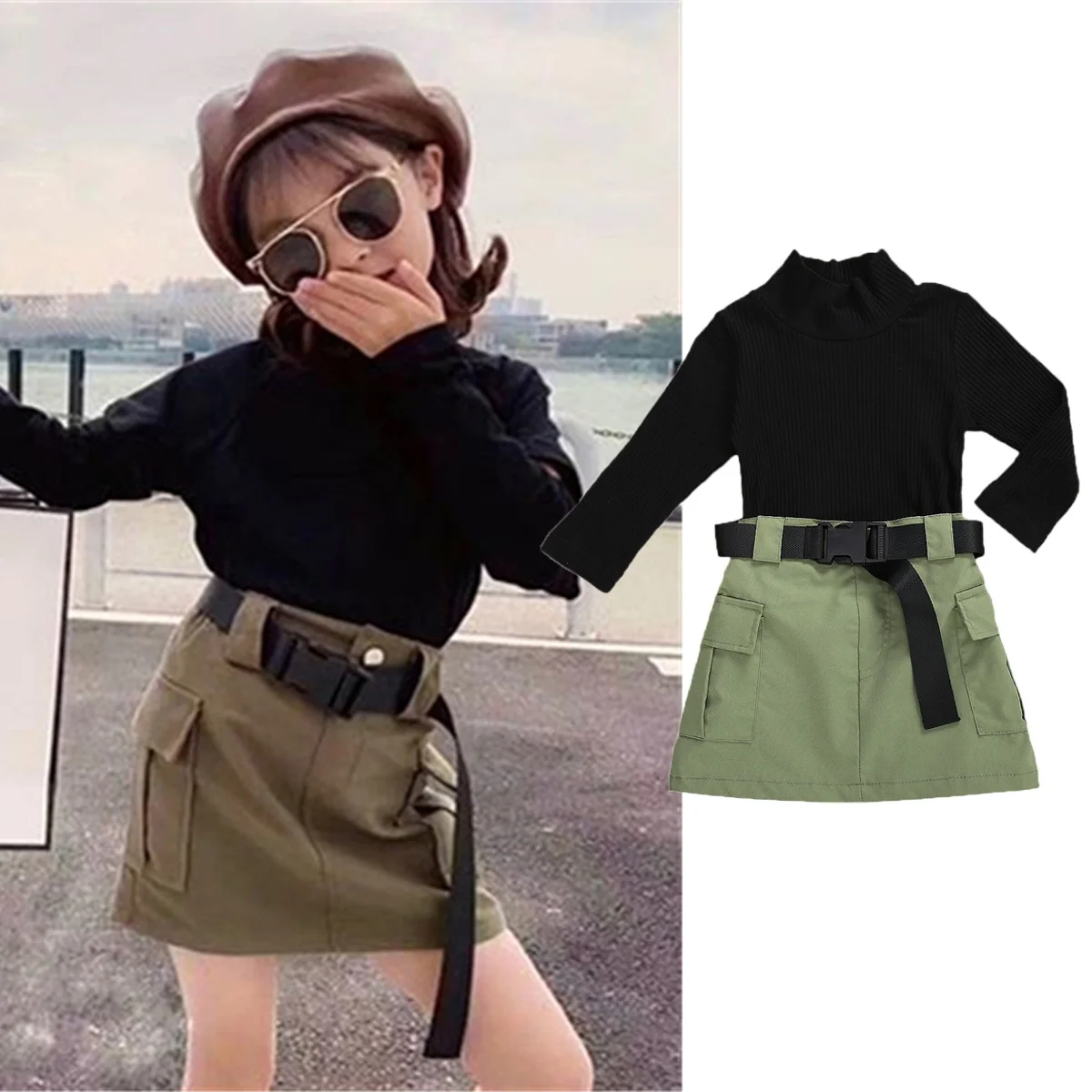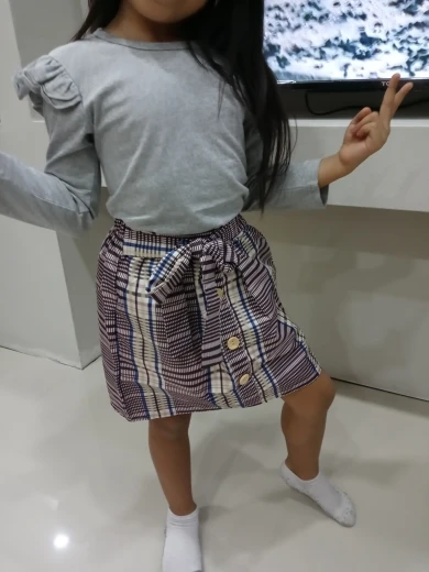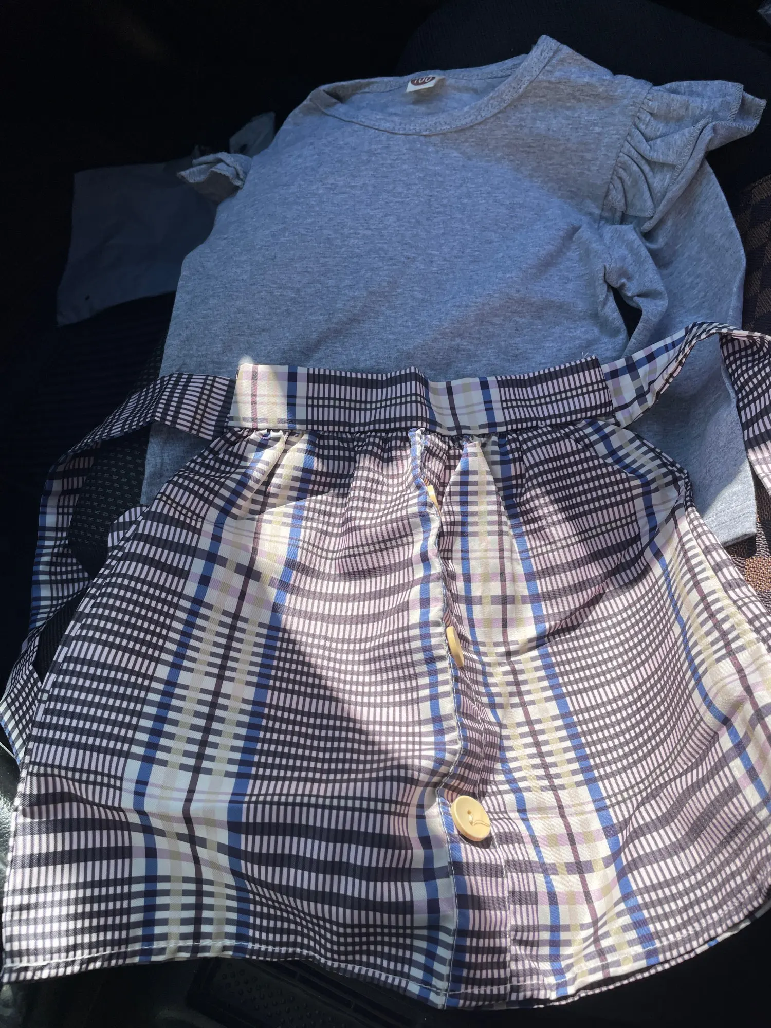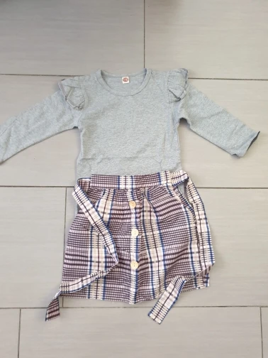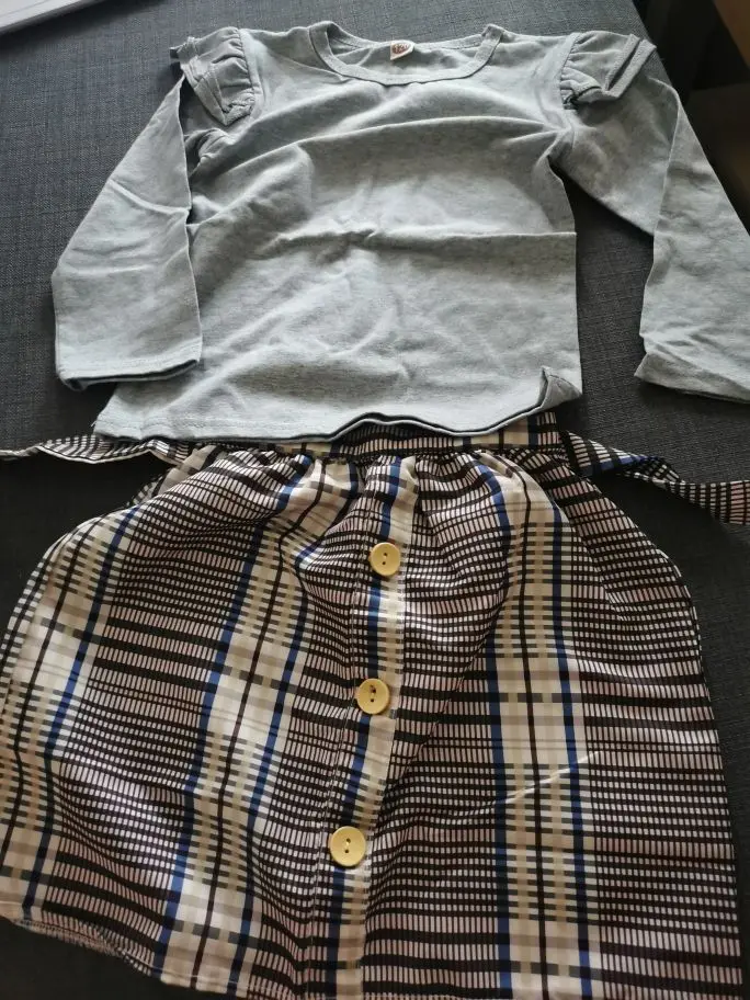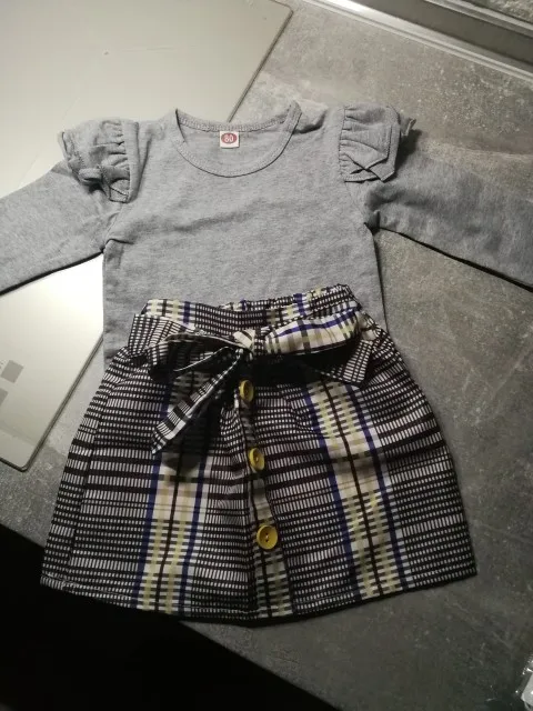 Футболка с рюшами и юбка в клетку для маленьких девочек