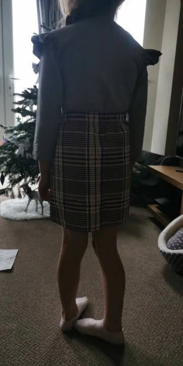 Соответствует описанию. Юбка тонкая, ткань выглядит как трикотажный материал, в описании мы бы сказали, что ткань теплее. Получил в течение 1 месяца