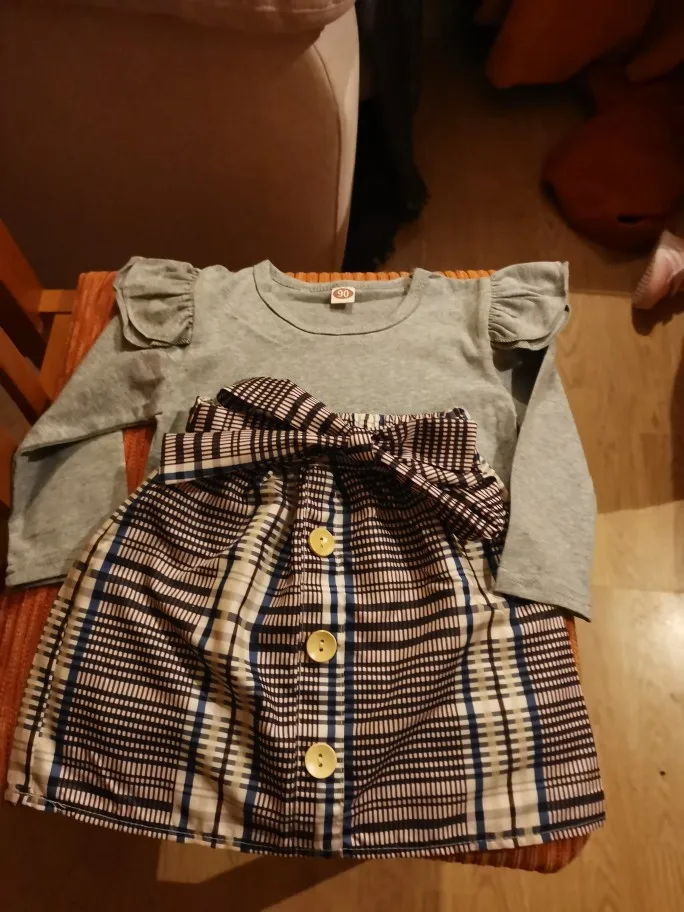 Красиво. Рубашка из мягкого хлопка; Юбка тонкая, а не хлопковая. Немного больше для моего ребенка ростом 75 см. Будет на следующий год.