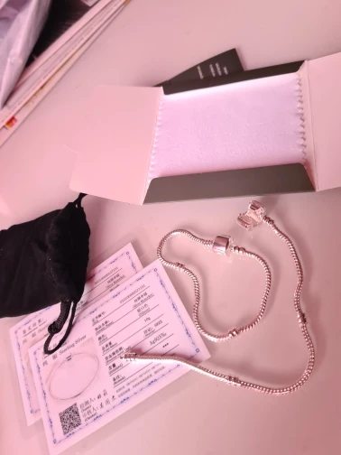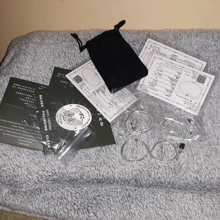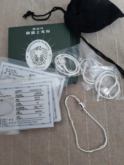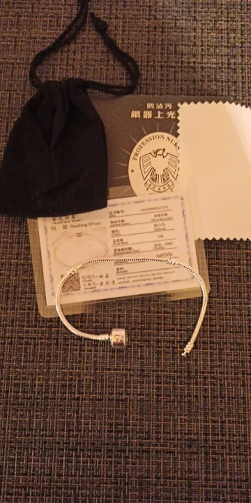 Заказ пришел меньше чем за месяц. В комплекте чехол для хранения браслета, тряпочка для чистки и сертификат серебряного изделия Китая. Описанию соответствует. Ношу 2 дня с 4 шармами, пока всё хорошо. Продавца рекомендую.