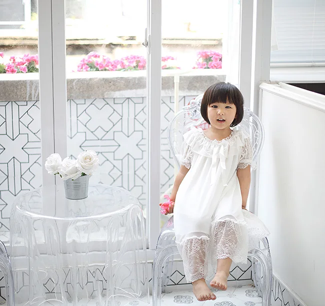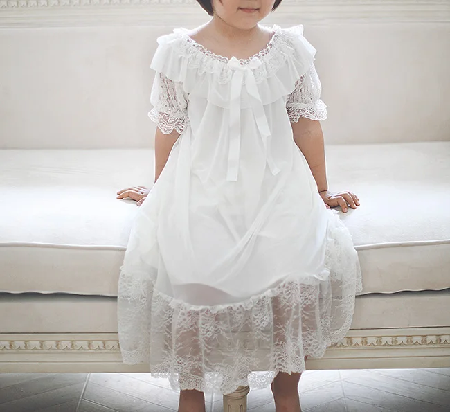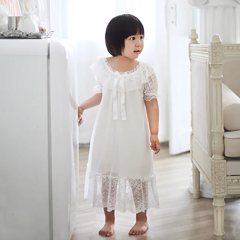 Детские стильные винтажные кружевные ночные рубашки в стиле принцессы