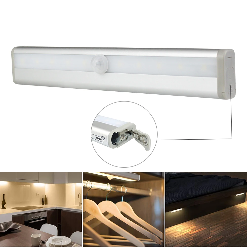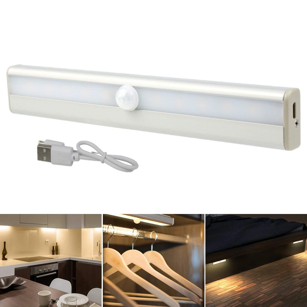 Беспроводной светодиодный светильник с ИК-датчиком движения, 10 светодиодов, перезаряжаемый от USBаккумуляторный инфракрасный индукционный светильник, ночник для спальни