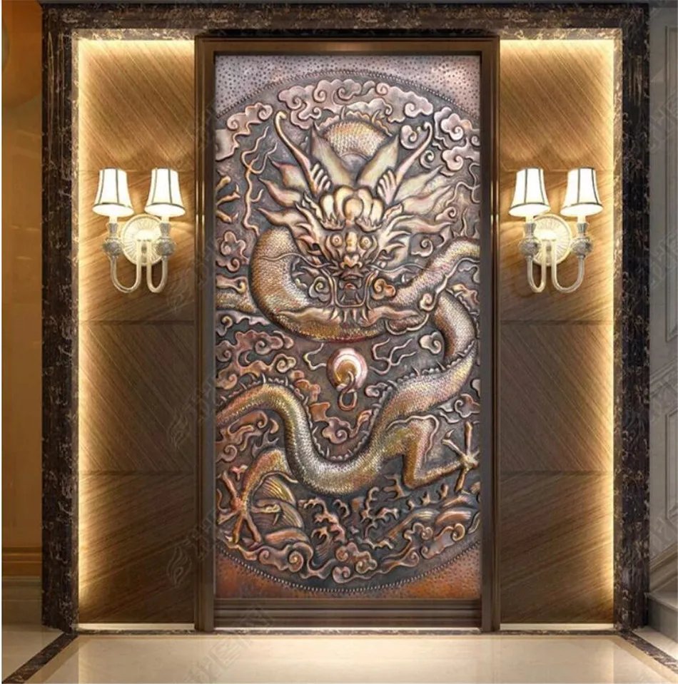 Пользовательские китайский стиль 3D рельефный дракон фото обои для роскошного домашнего декора отель ресторан вход Фреска для коридора обои 3D