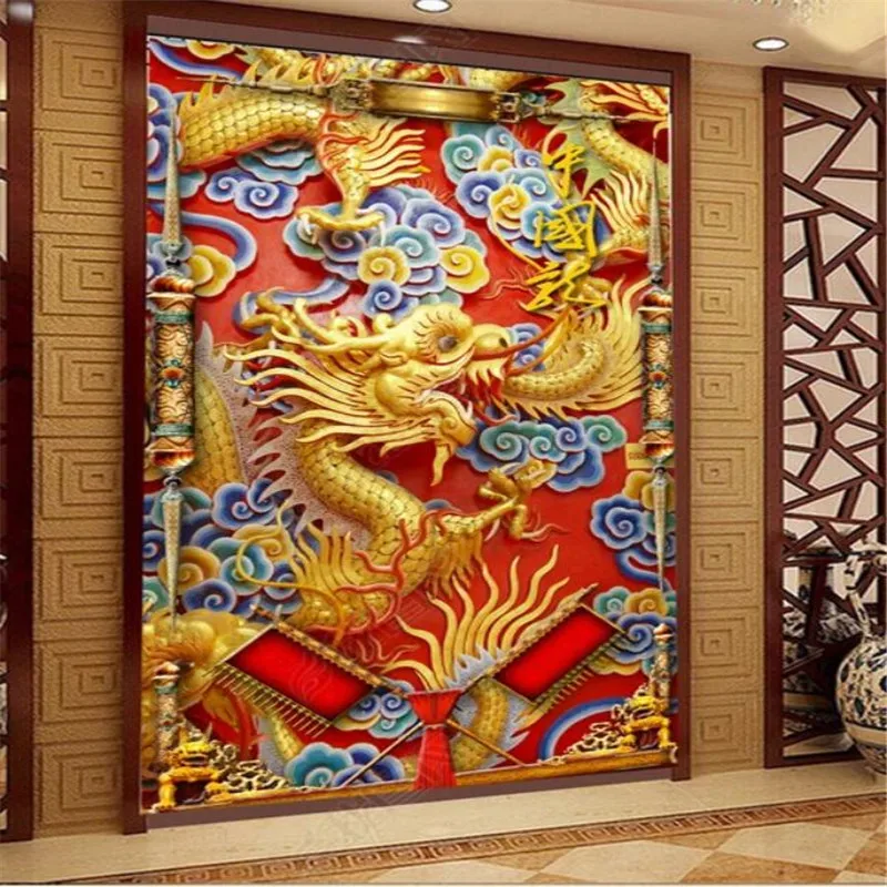 Роскошные китайские тисненые драконы, 3D фотообои для отеля, гостиной, крыльца, промышленный декор, настенные 3D-обои, домашний декор