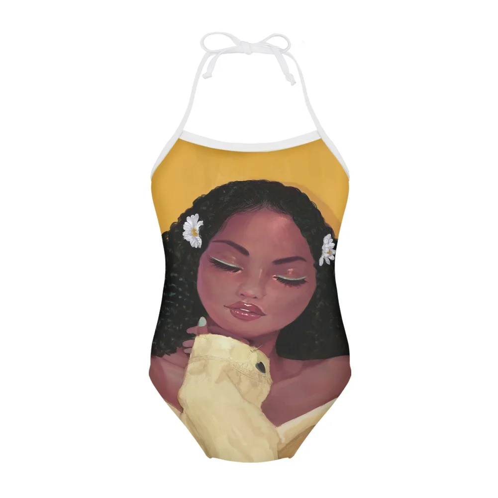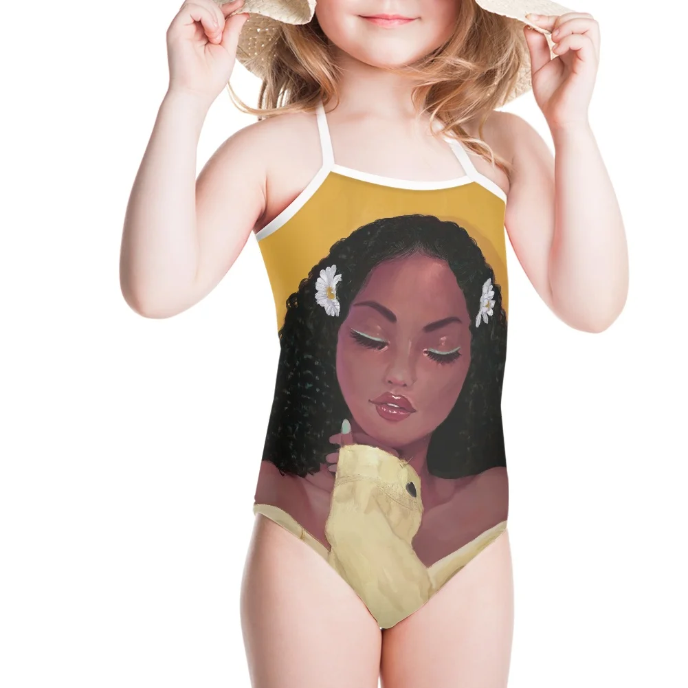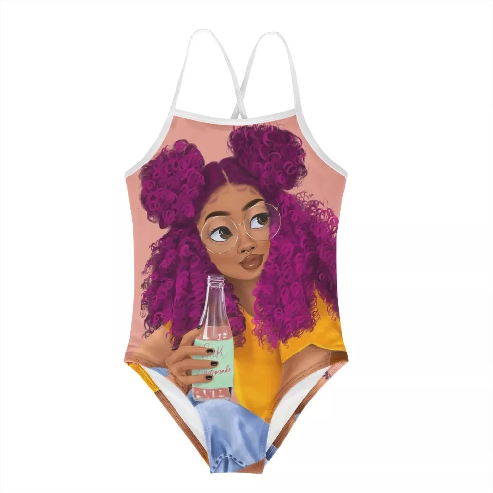 HYCOOL купальники для девочек-подростков, афро, черная девушка, питьевой еды, еда, узор, цельные костюмы, детские купальники, модные детские купальные костюмы