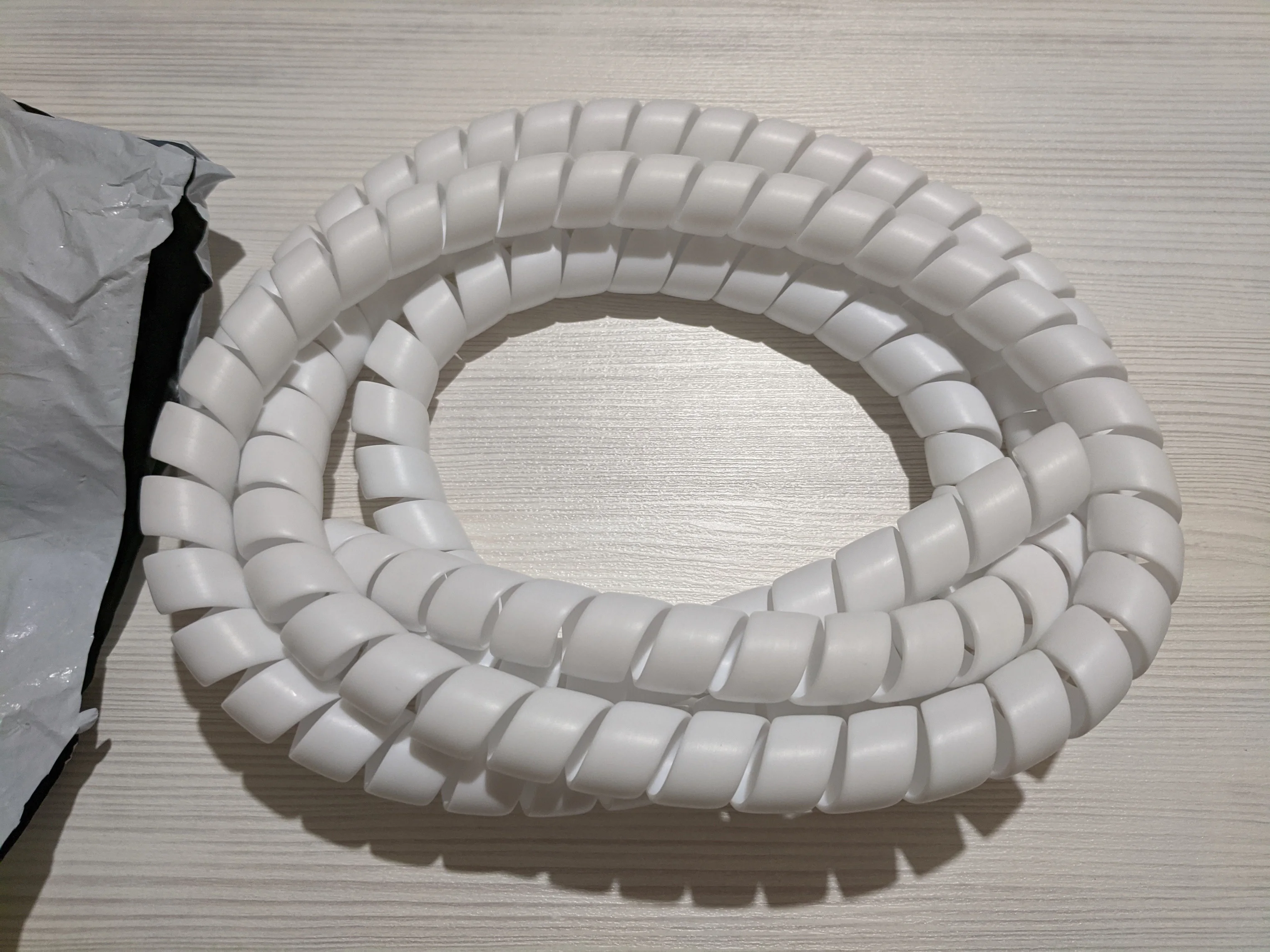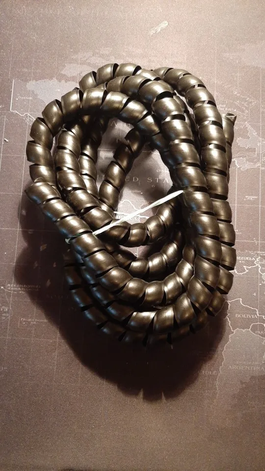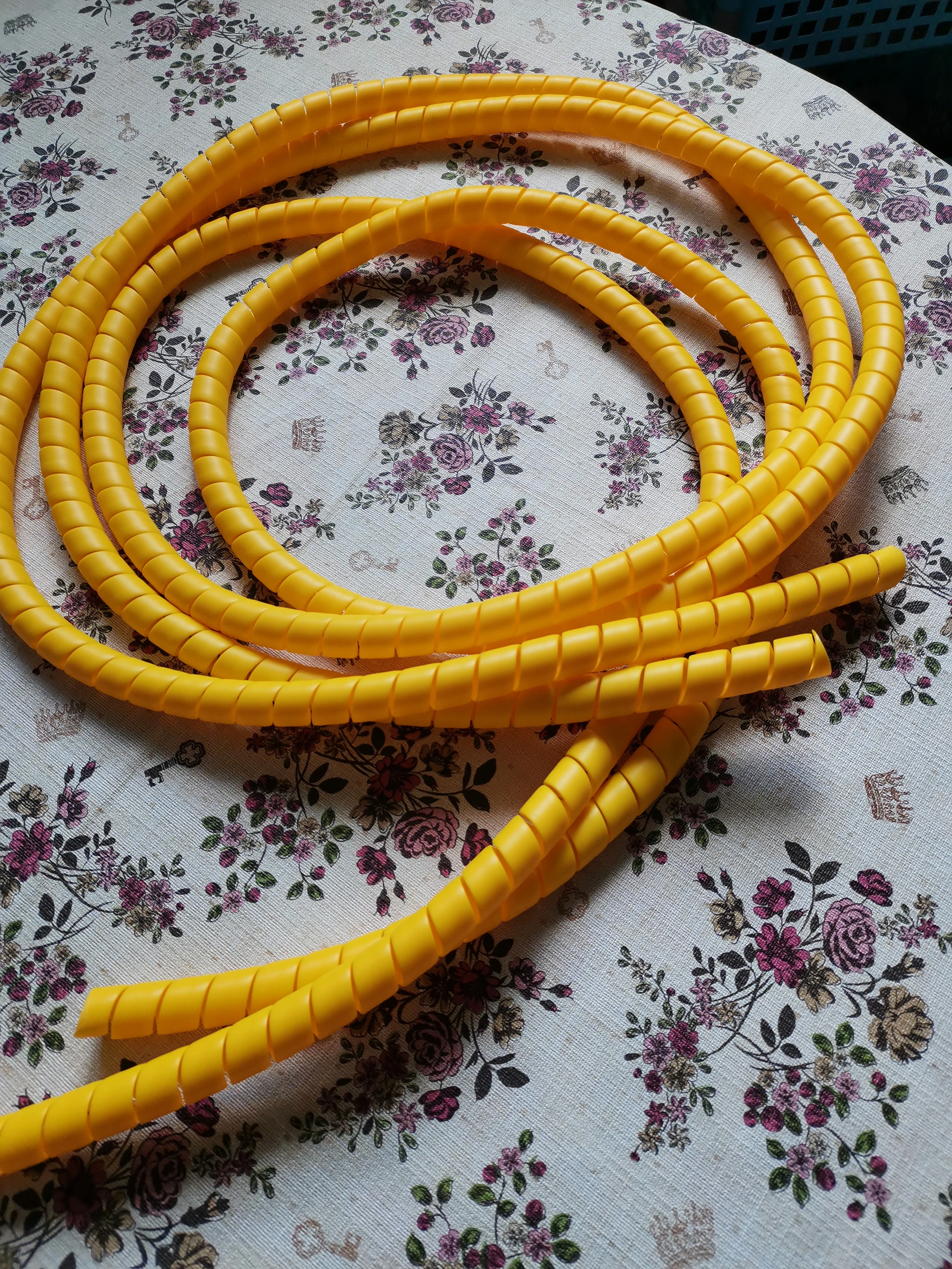 Отлично защищает провода бытовой техники от наезда колесиками офисных кресел, зубов домашних животных. Оболочку формирует плотную. На фото - 8 мм диаметр. На один провод подходит прекрасно. Если нужно скрепить два провода - лучше брать 14мм.