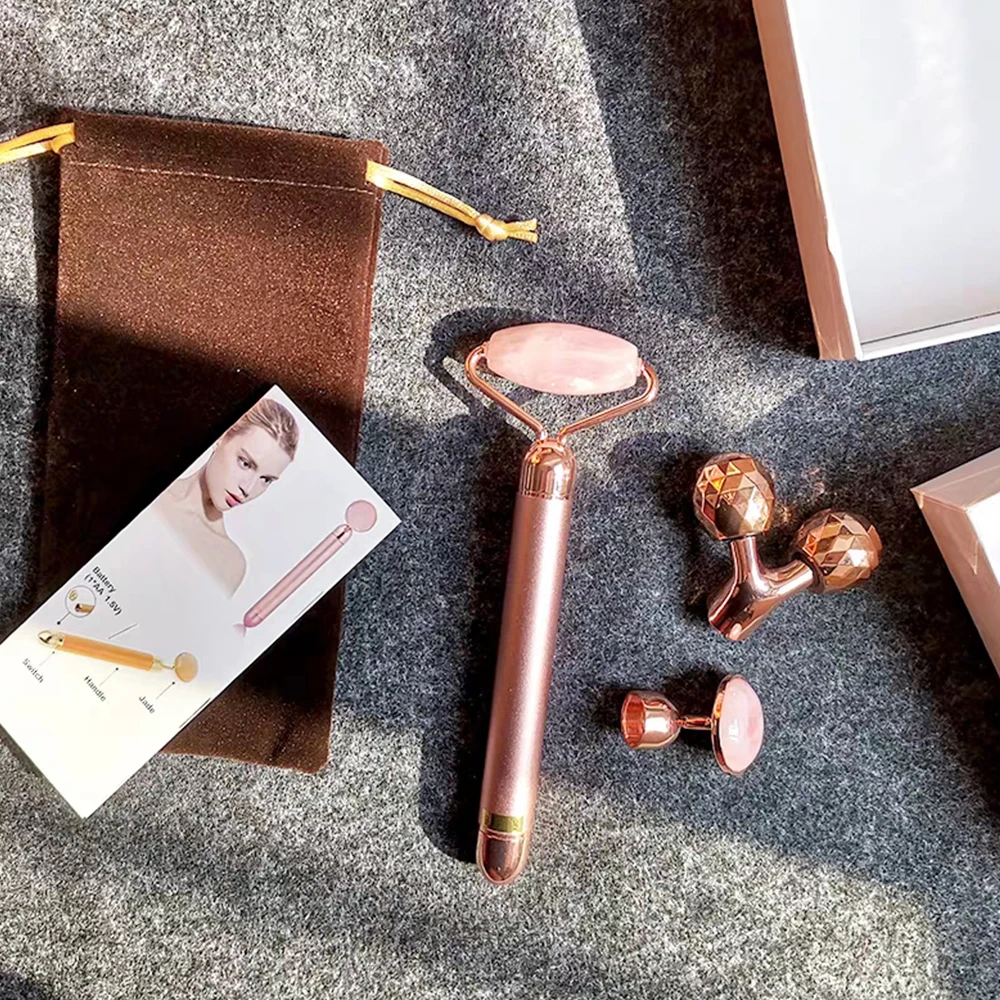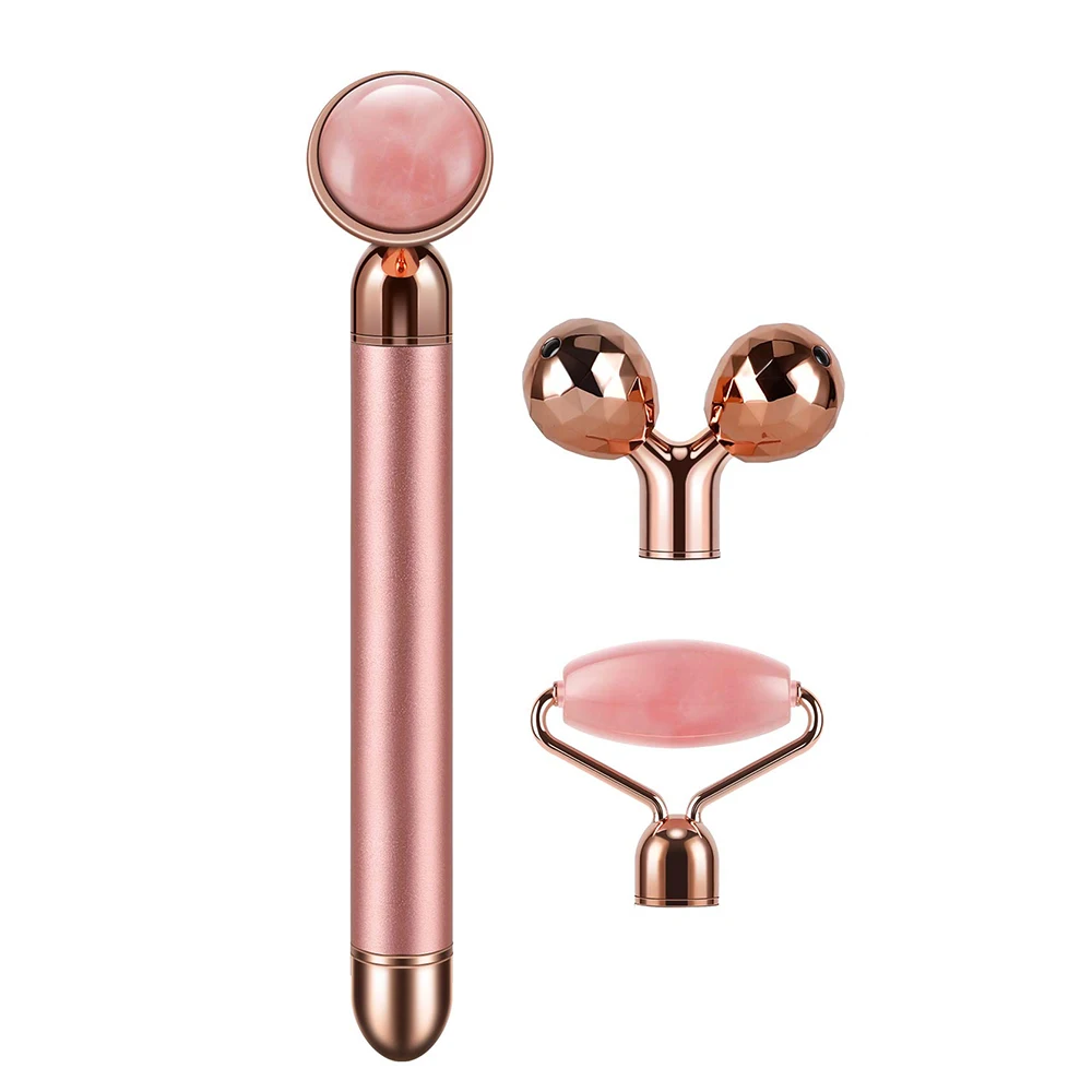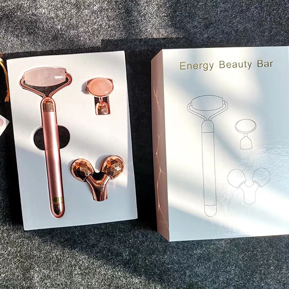 Новый 3-в-1 Электрический нефритовый ролик энергия красота бар Вибрационный натуральный розовый кварц нефритовый роликовый лицевой ролик Массажер для лифтинга