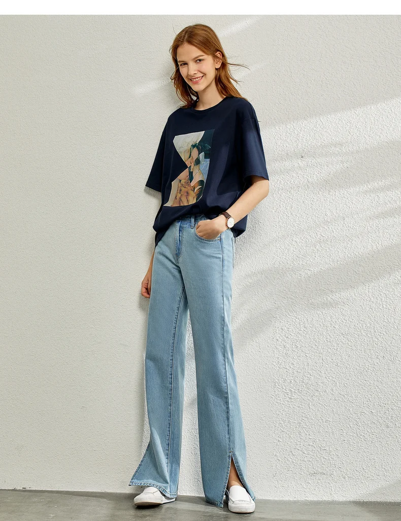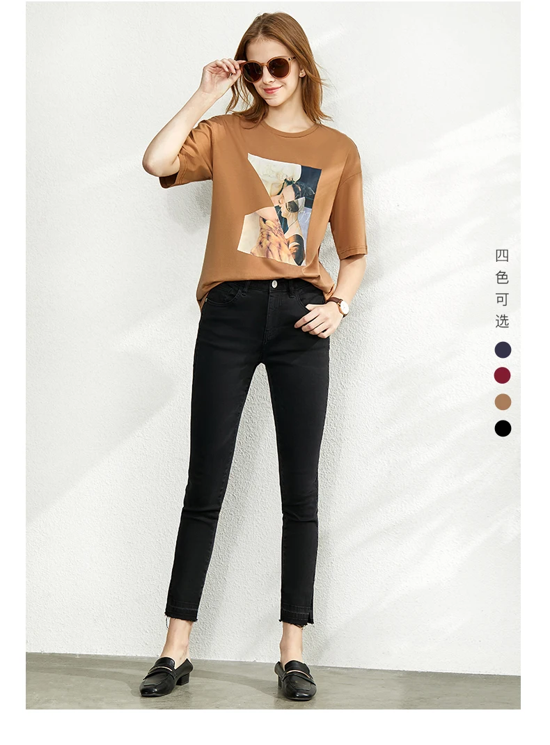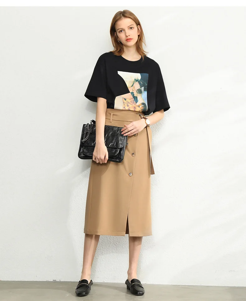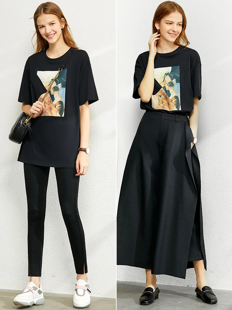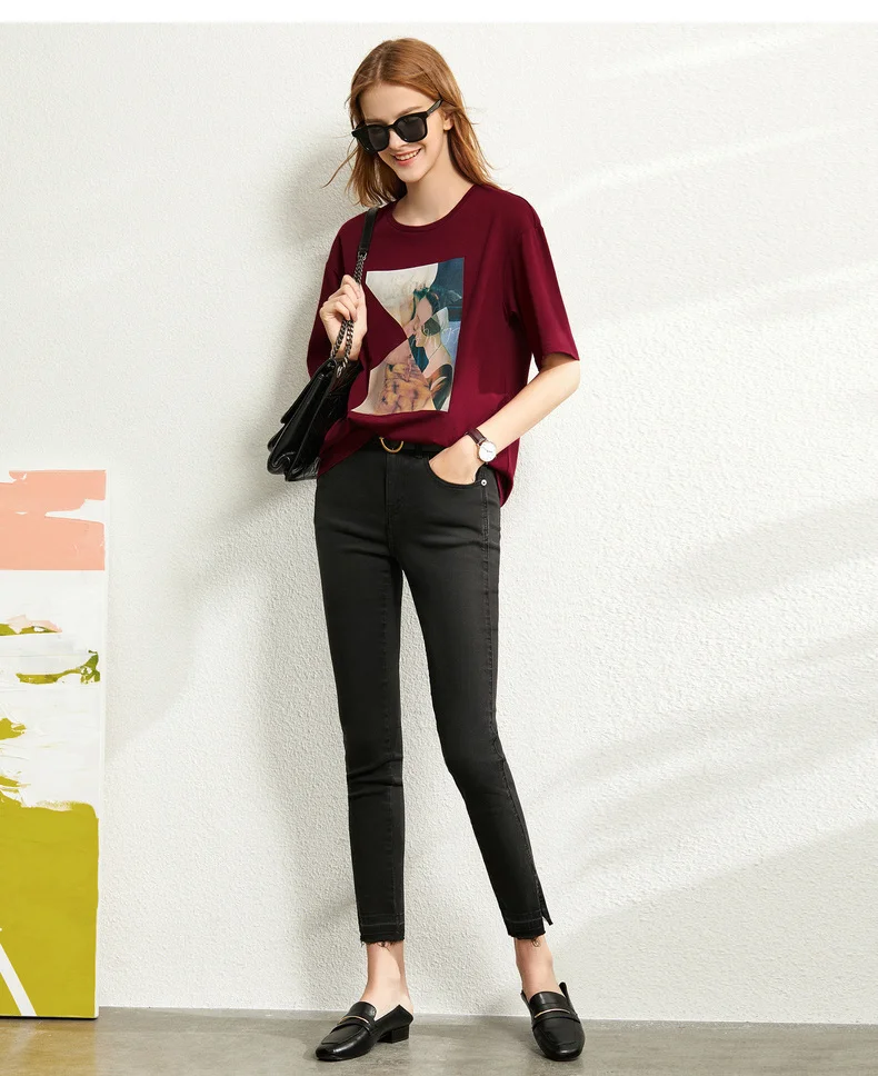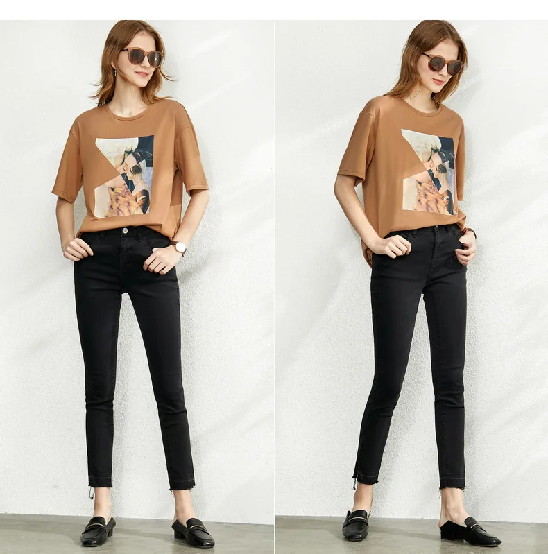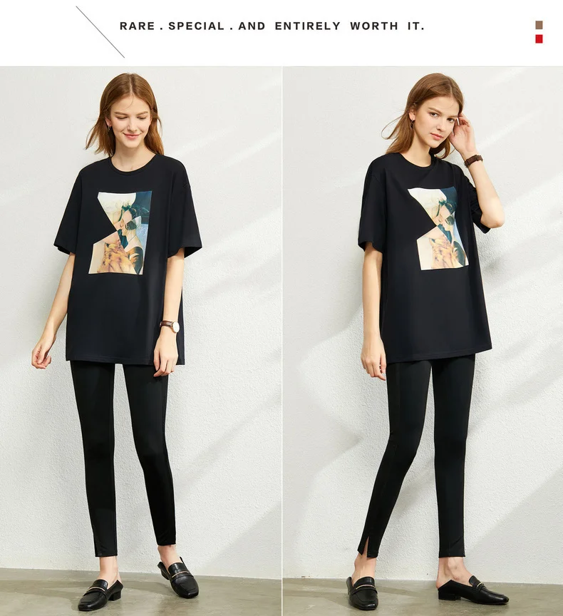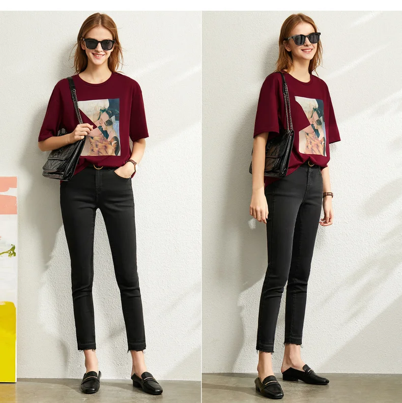 Футболка женская хлопковая, с круглым вырезом и принтом, лето 12020007