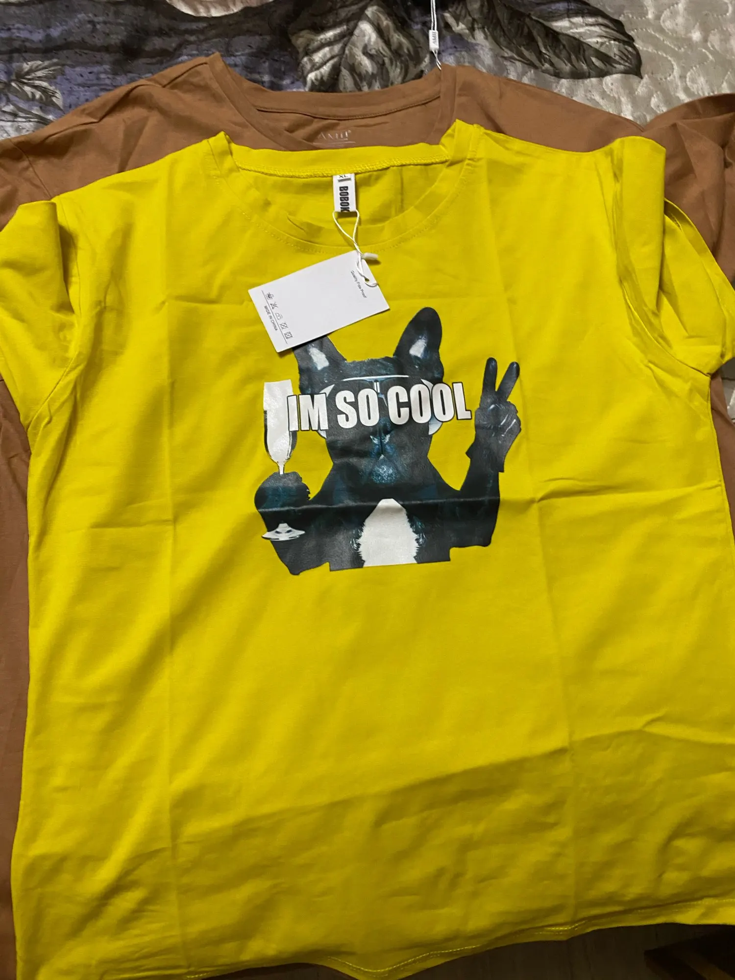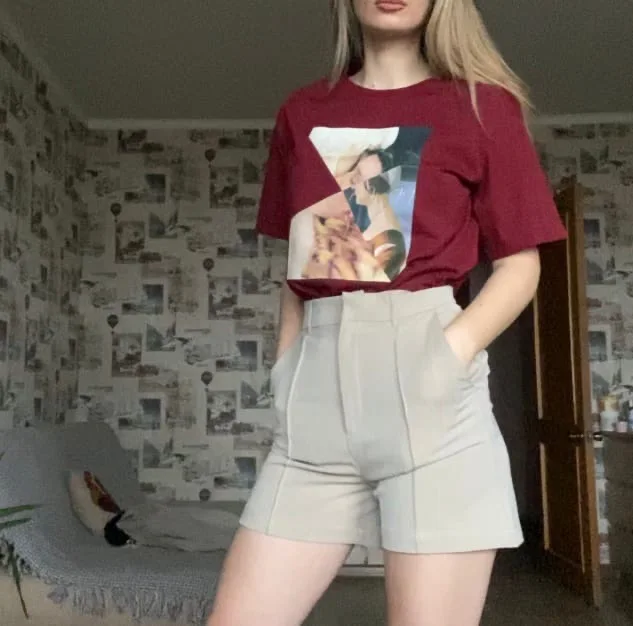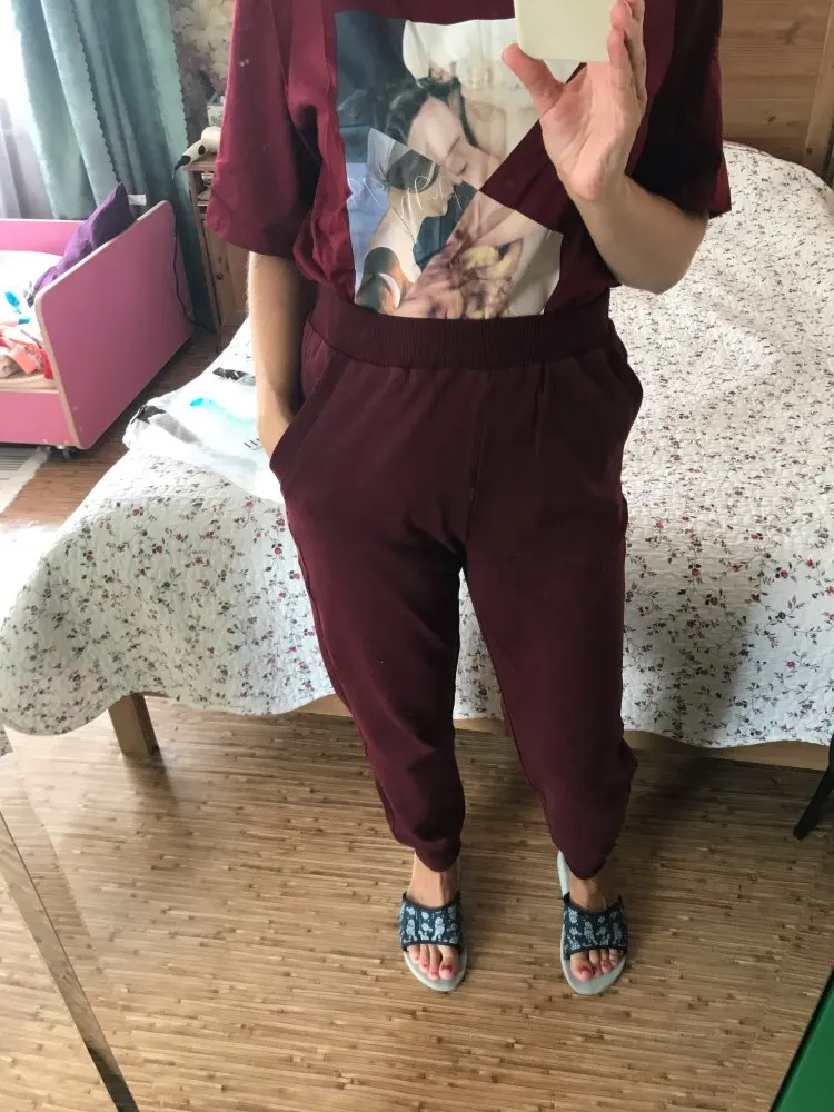 Очень довольна футболкой как раз немного оверсайз на мои параметры, плотная, рисунок не клеёнка.
