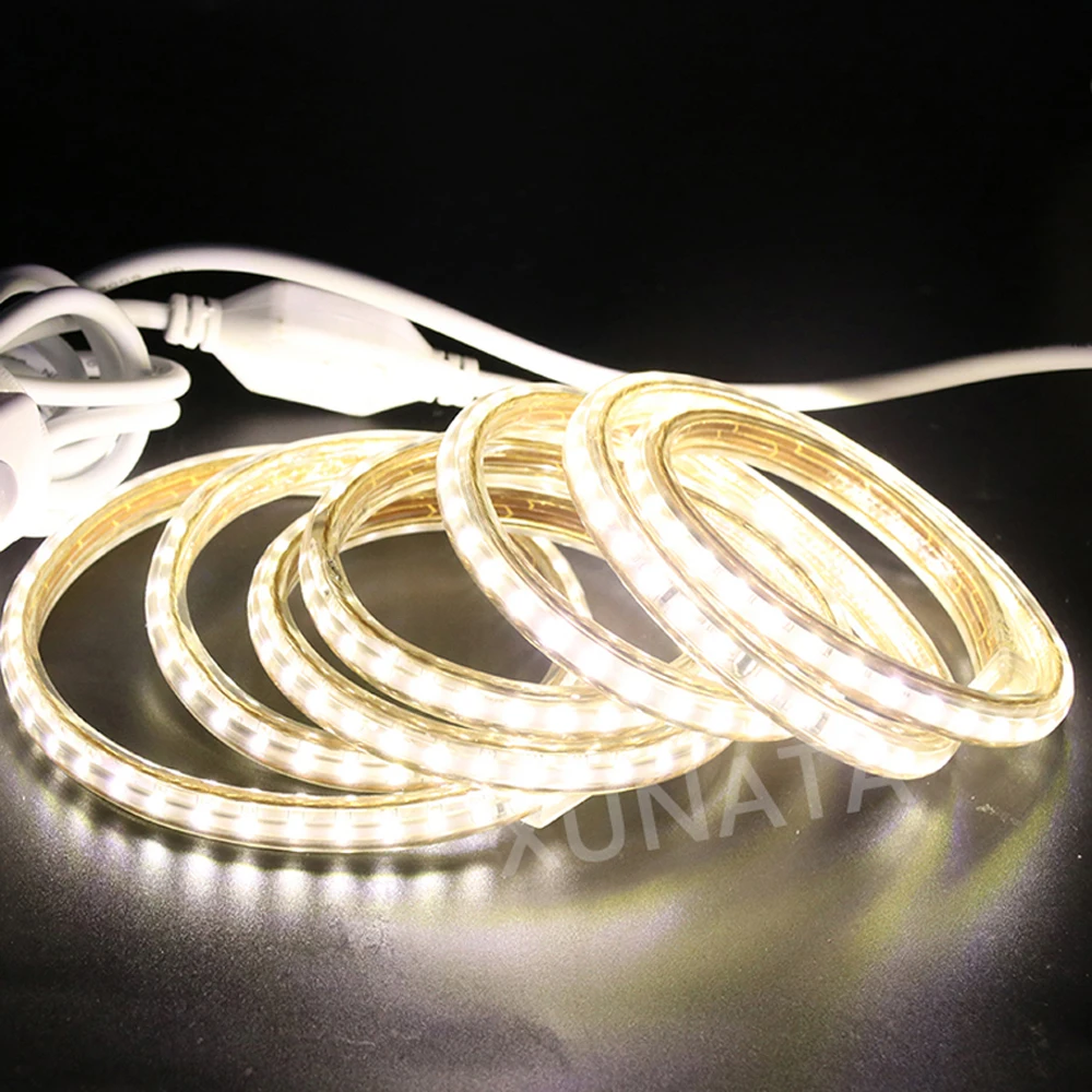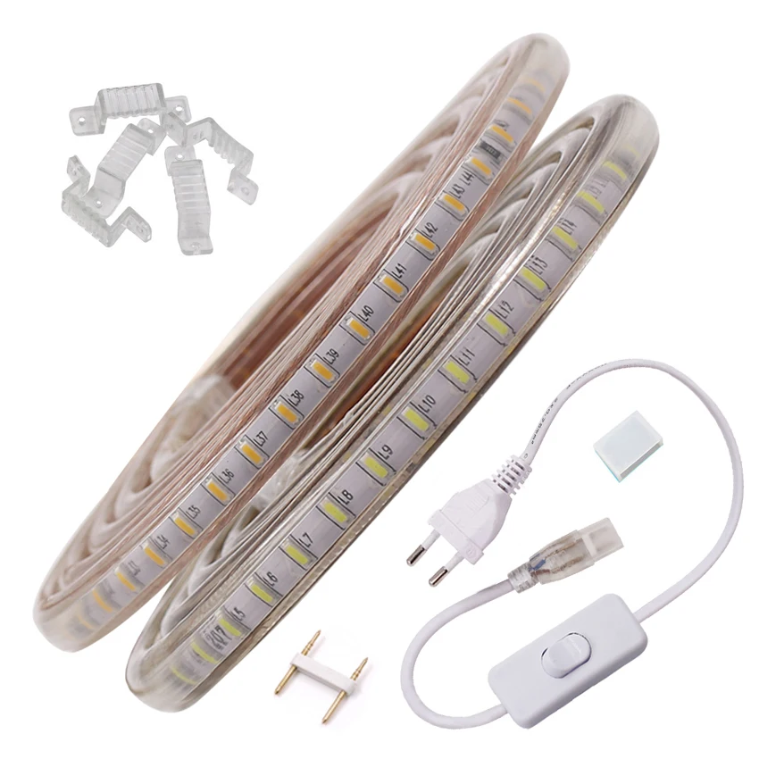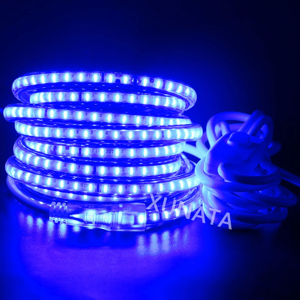 220В светодиодный ленточный светильник 3014 120 светодиодовм водонепроницаемый напольный светодиодный веревочный светильник s лента синийбелыйтеплый белый с штепсельной вилкой европейского стандарта 1-100 м