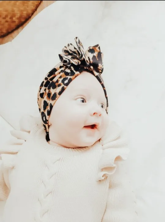 Шапка-тюрбан для новорожденных девочек и мальчиков, шапка с бантом и цветком, шапка из индийского хлопка с леопардовым принтом, шапочка для родителей и детей