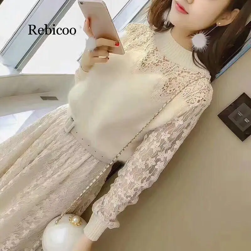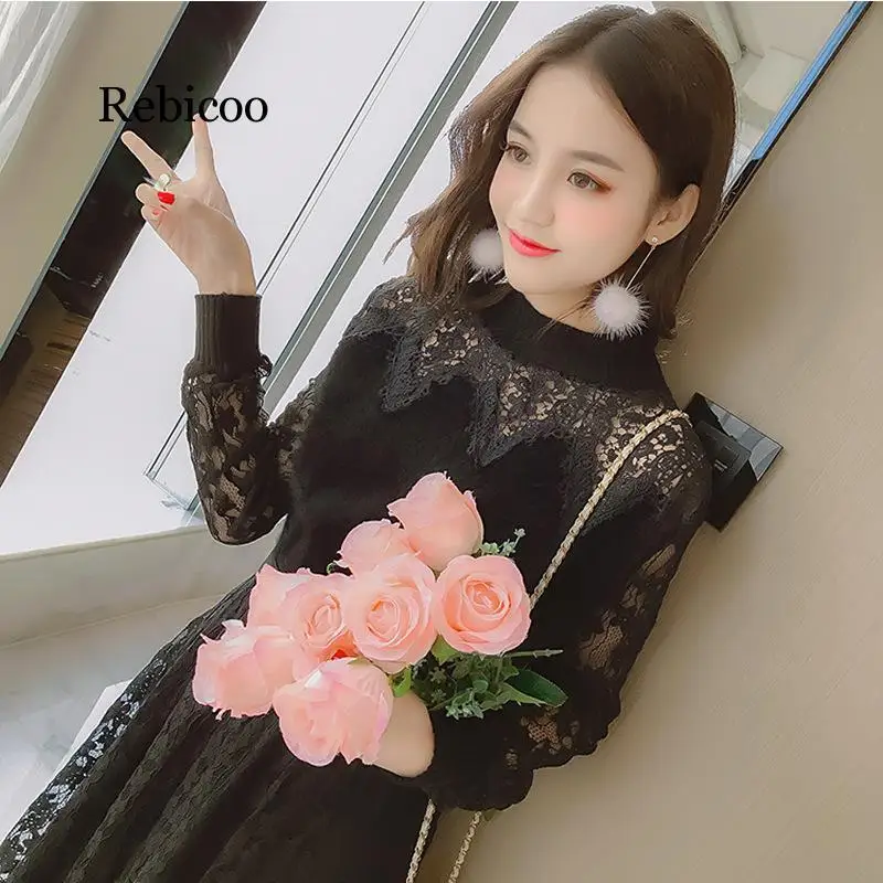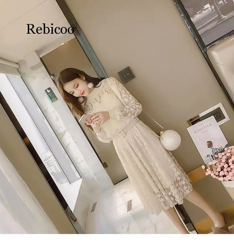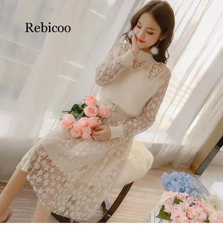 Женское платье, Осеннее Новое приталенное маленькое ажурное кружевное платье, длинное платье-свитер, плиссированное вязаное платье, модное платье