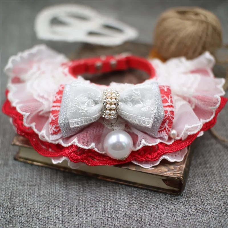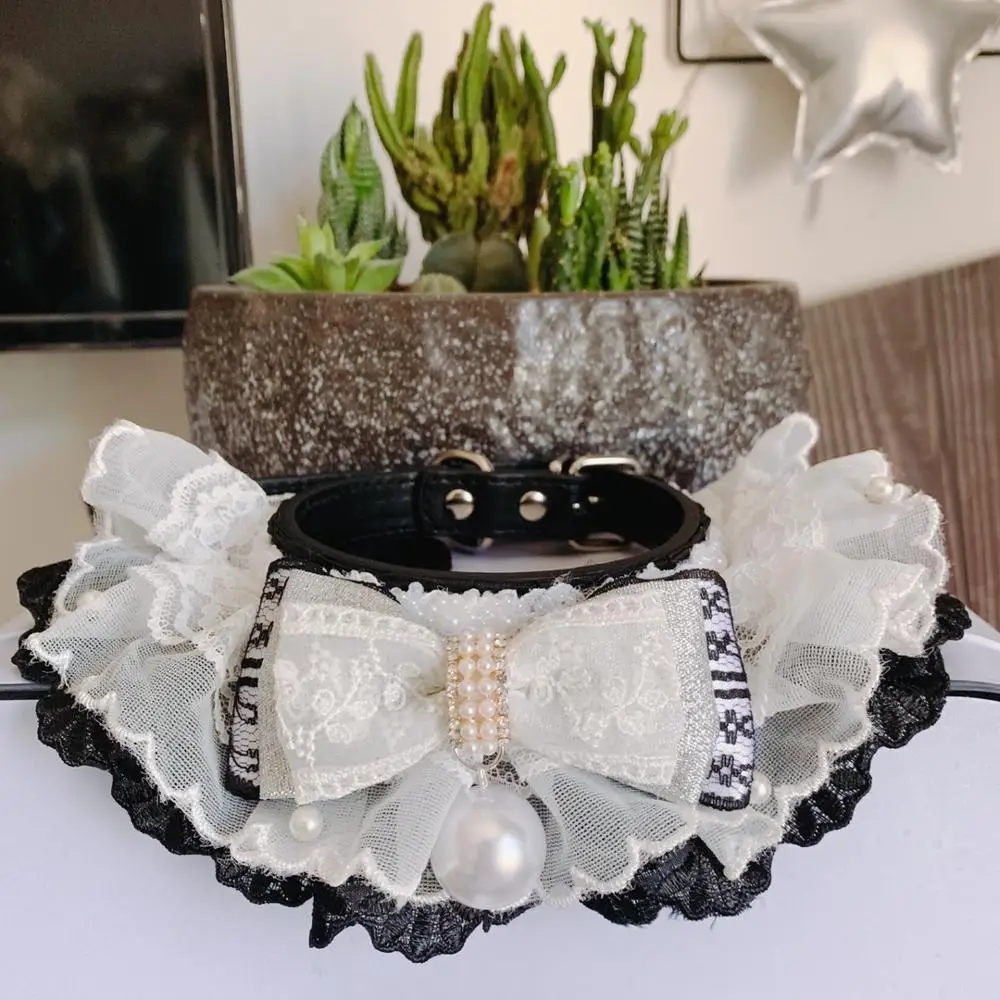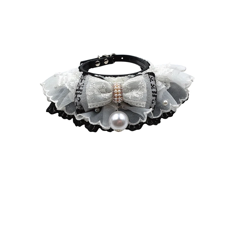 Новинка 2020, аксессуары для домашних животных, ошейник для собак, слюнявчик для кошек с цветами, капюшон ручной работы сделай сам, черный и белый кружевной ошейник для кошек и собак в стиле "Лолита"