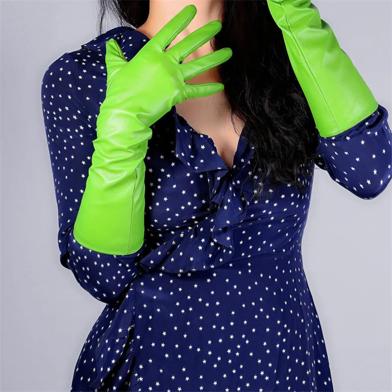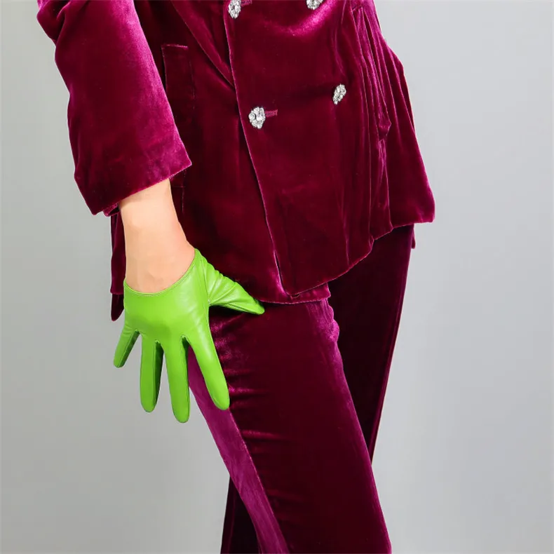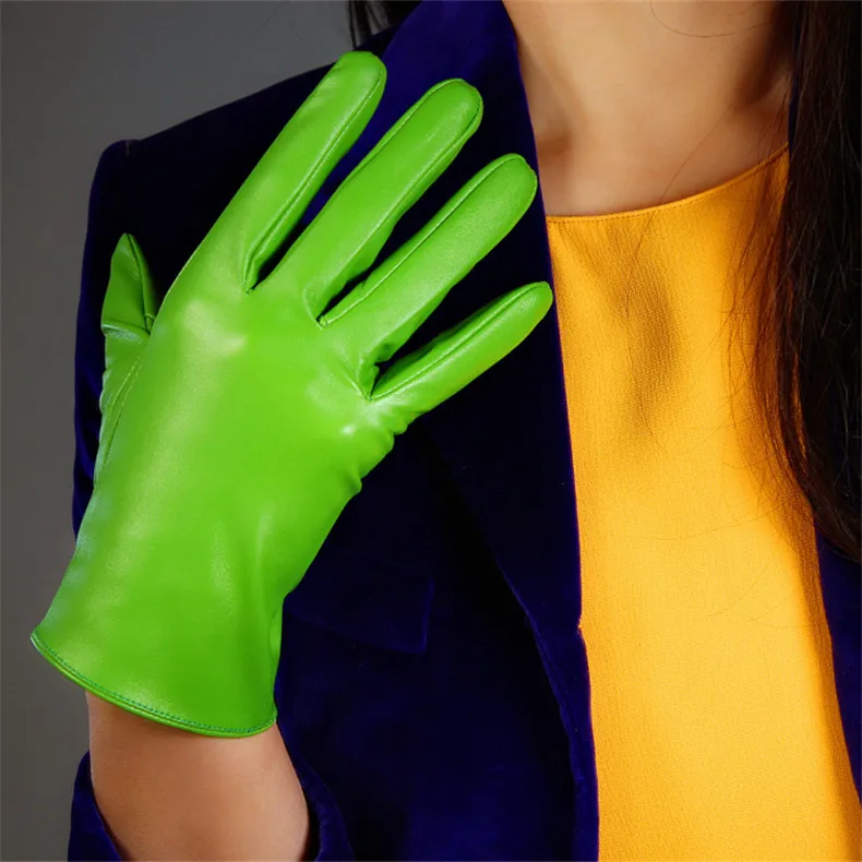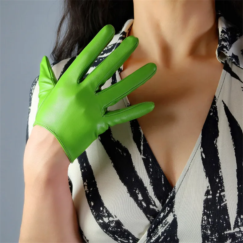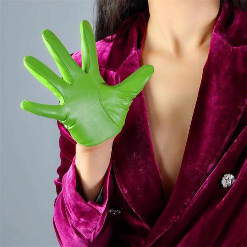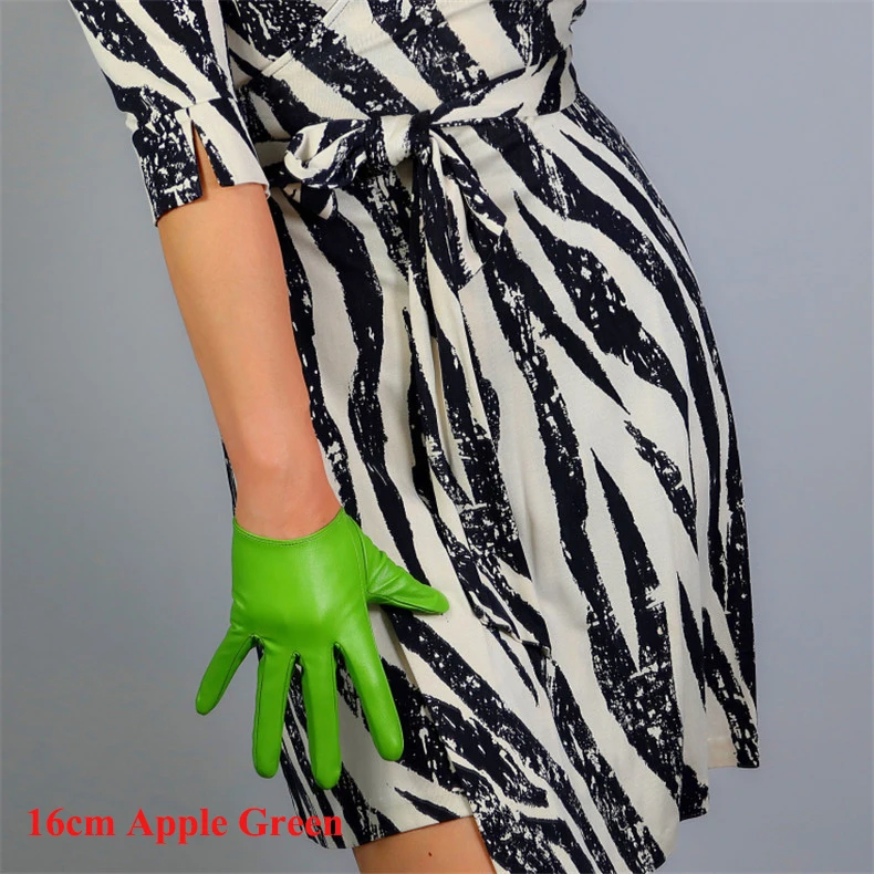 Короткие модные перчатки из искусственной овечьей кожи, 8 дюймов, 21 см, запястье, яблоко, авокадо, зеленые женские перчатки WPU193