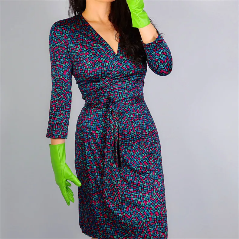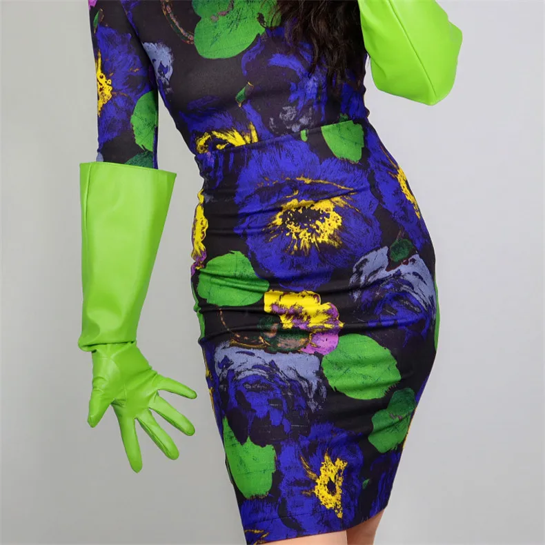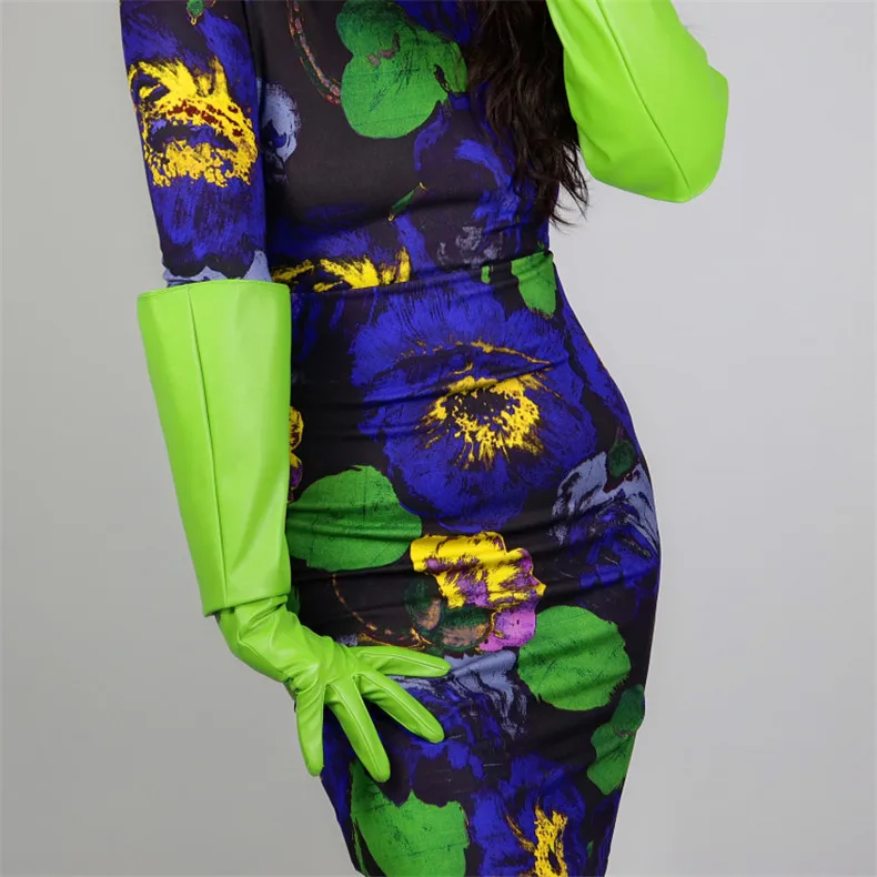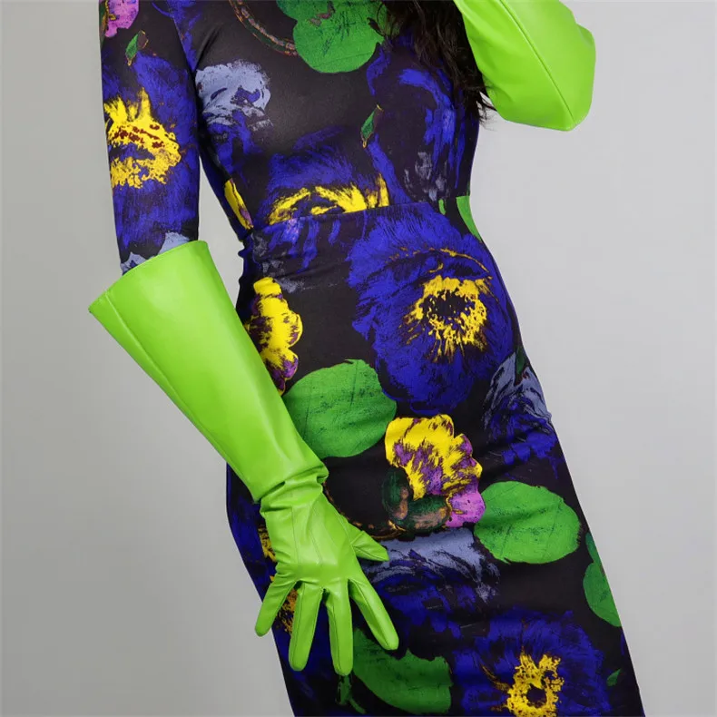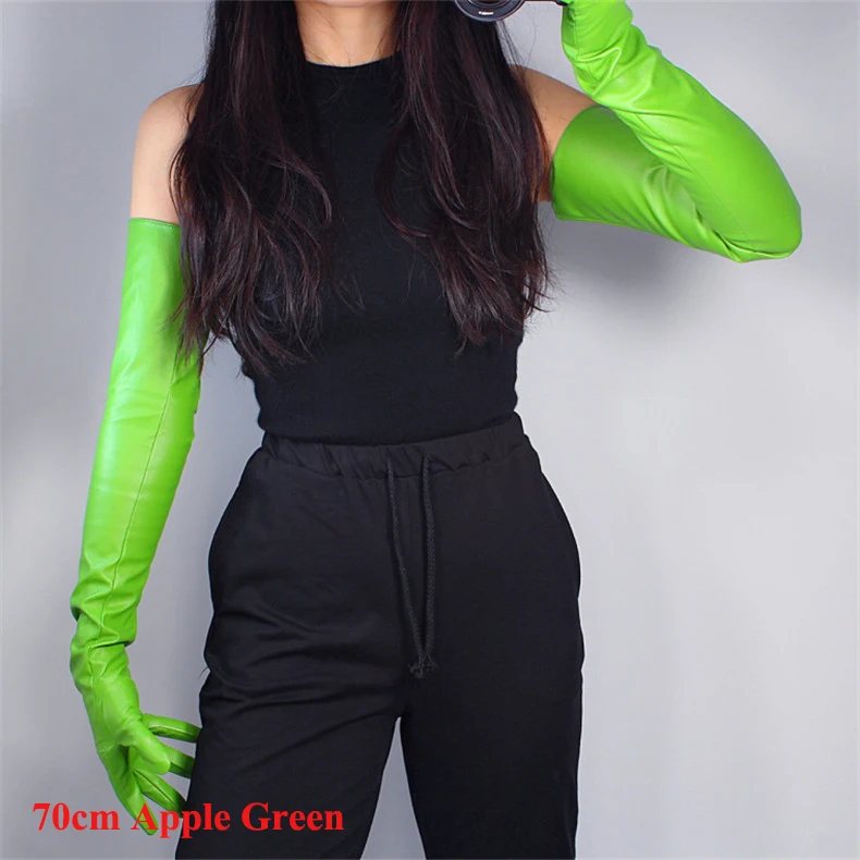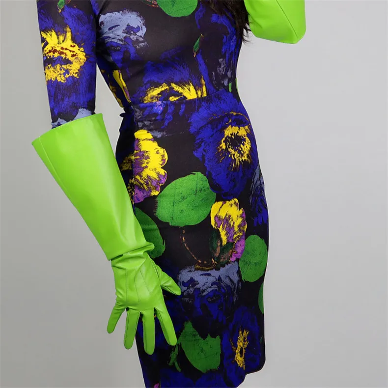 Короткие модные перчатки из искусственной овечьей кожи, 8 дюймов, 21 см, запястье, яблоко, авокадо, зеленые женские перчатки WPU193